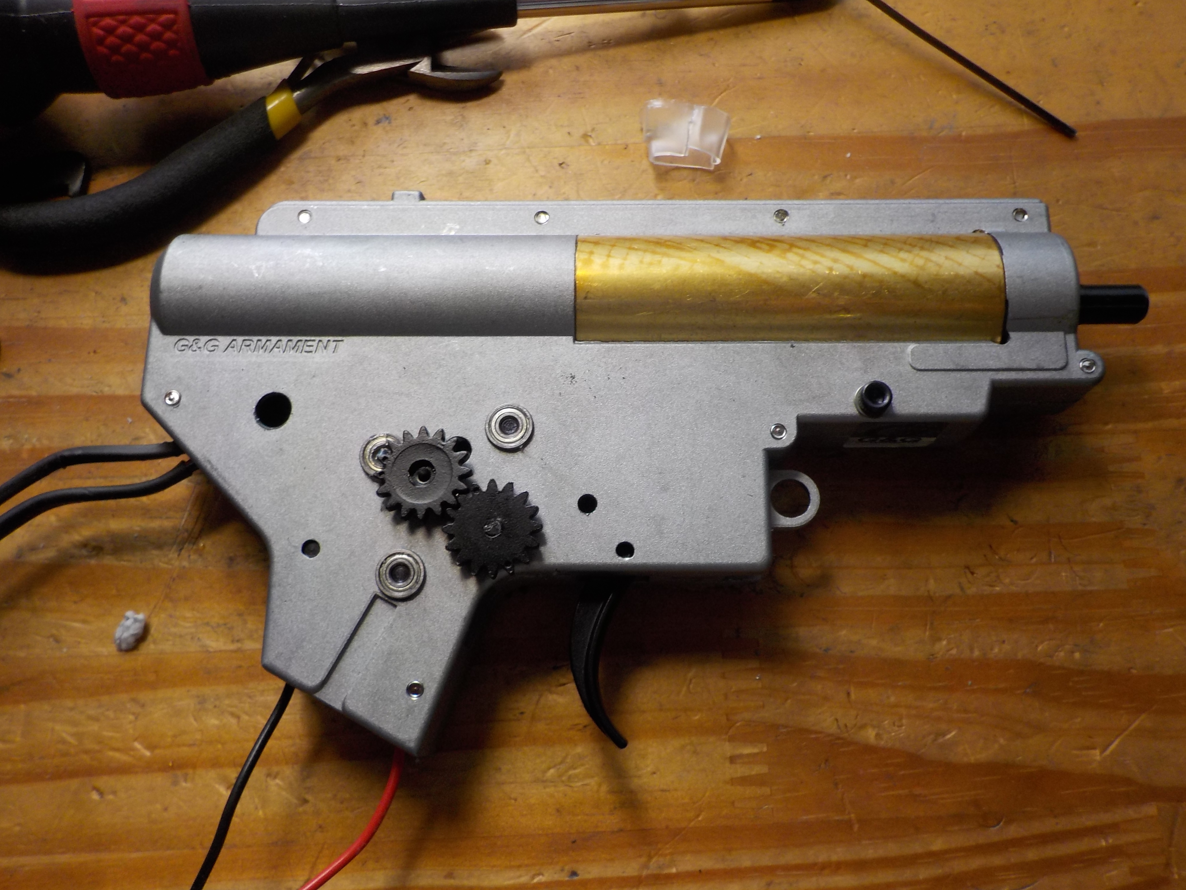 トリガー手元にある、セレクターの貫通ギアは、上側はすぐに外れます(取り付ける時に左右のセレクターのはまる位置を確認すること)