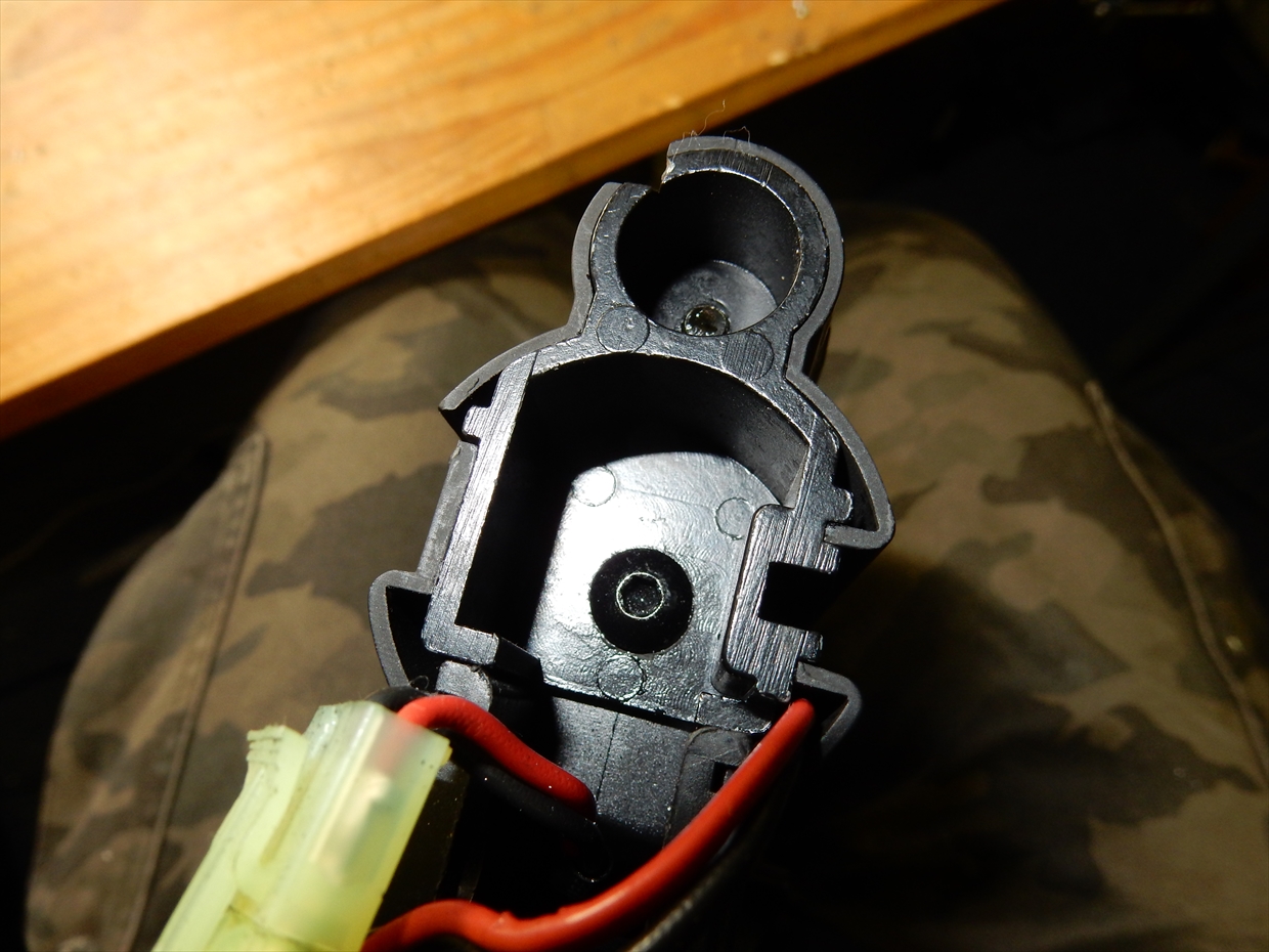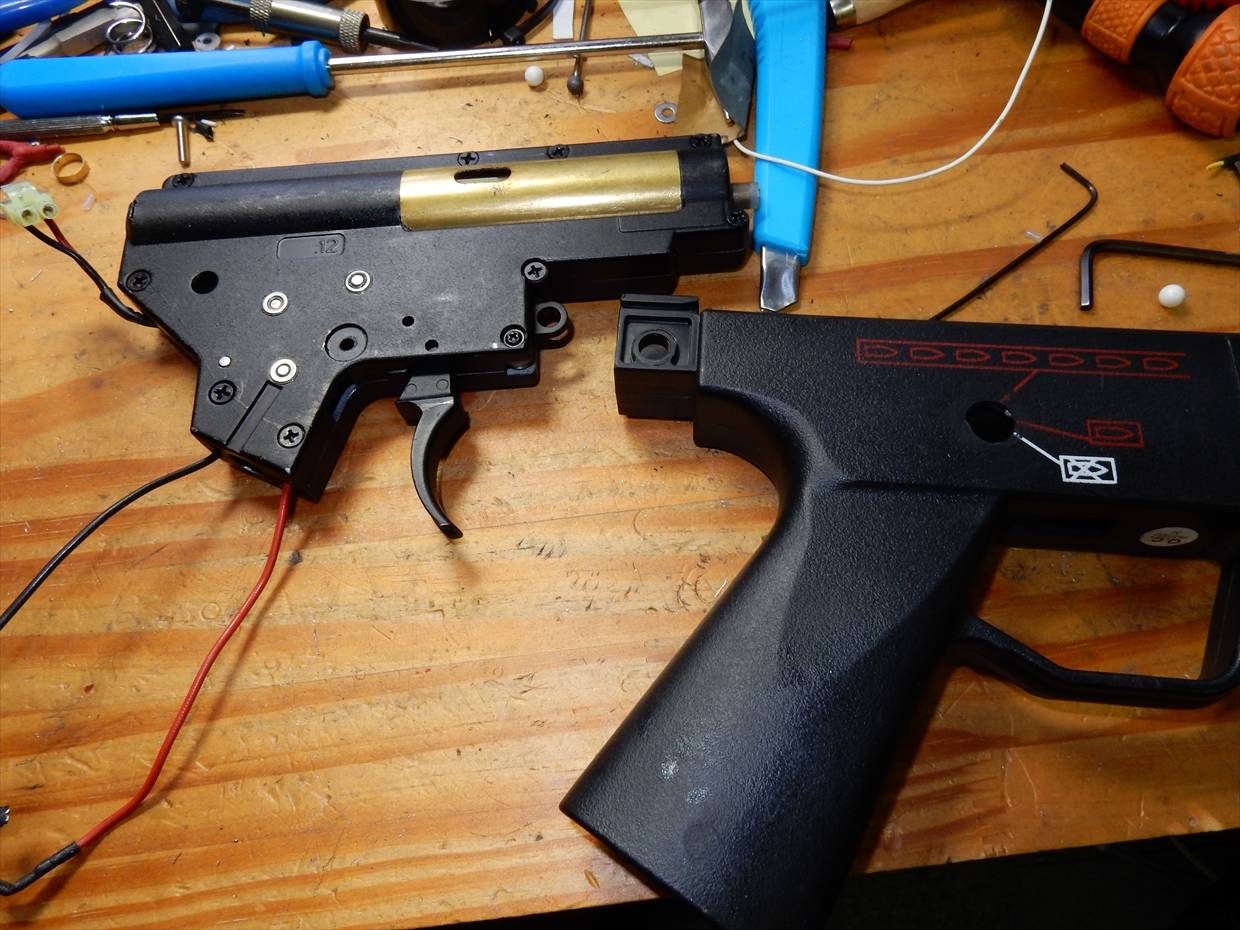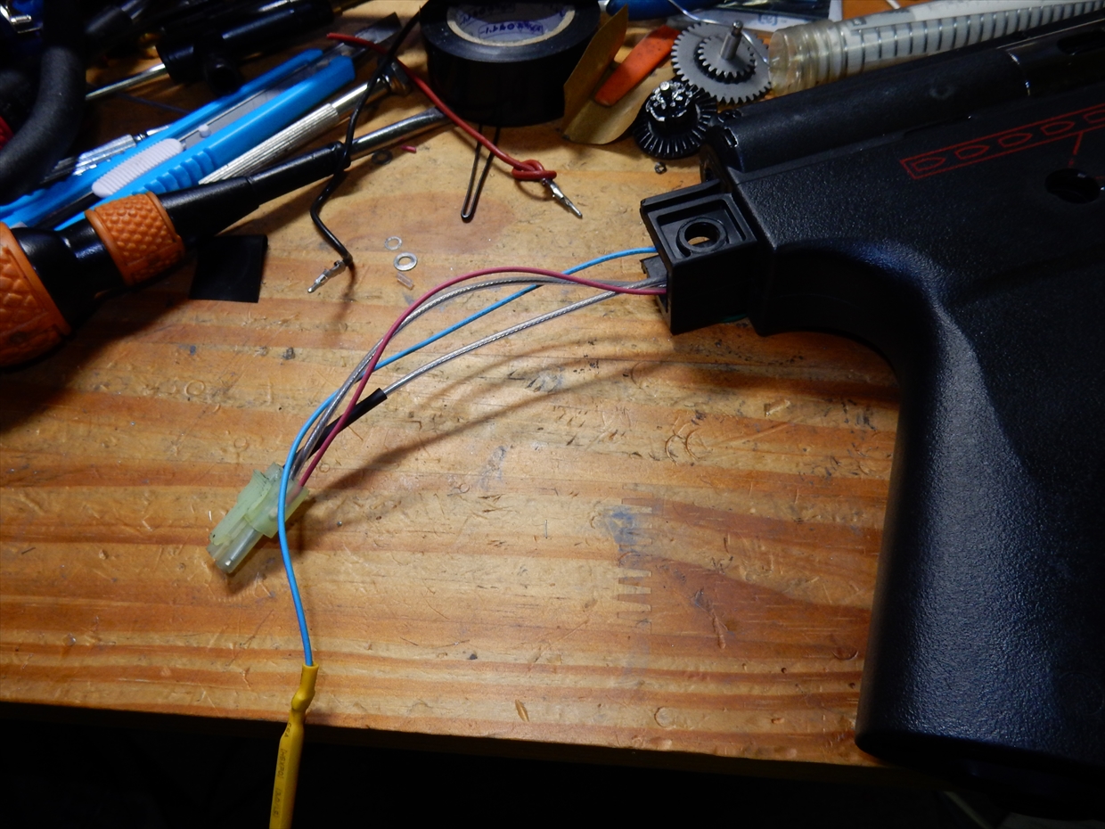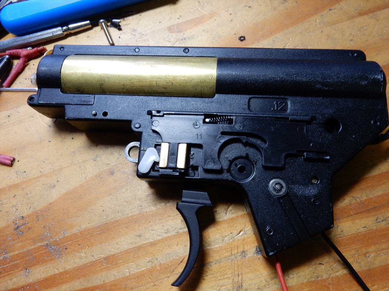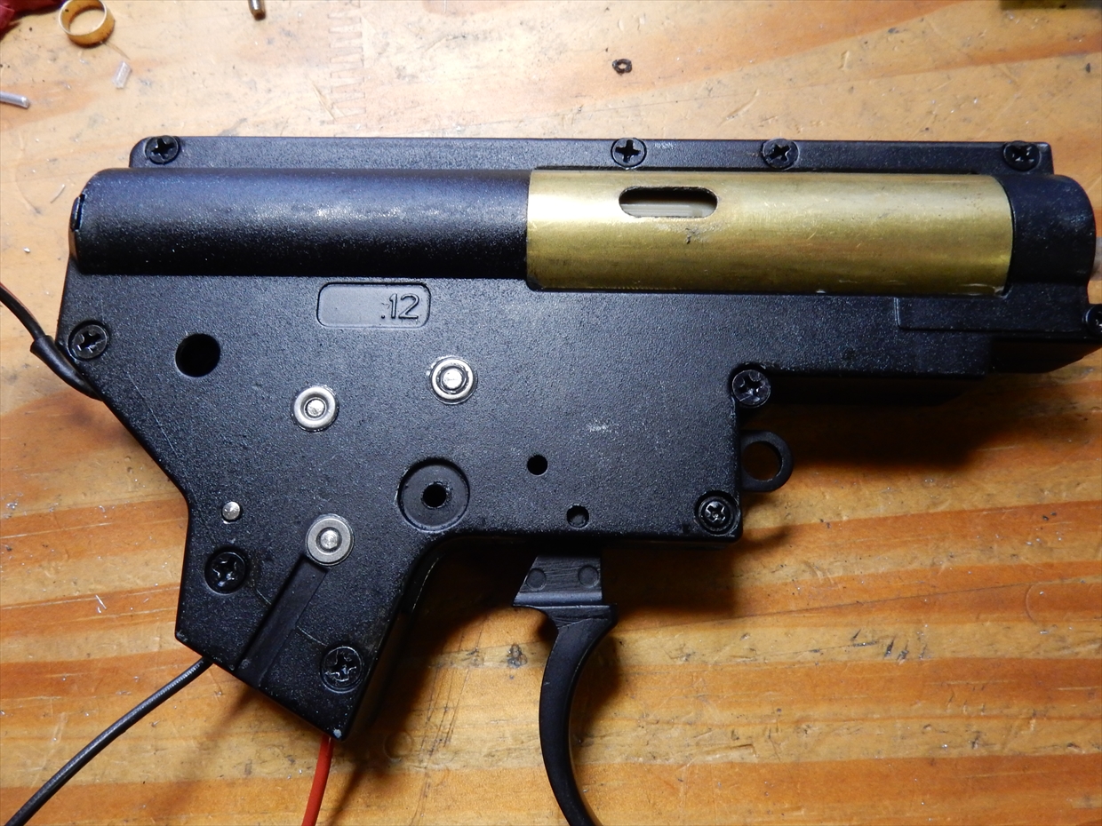 これに、FET・テフロンコード・G&P M120モーターを入れて、何度か調整して、初速90m/s 連射速度 22発/秒(ギア比16:1)に落ち着きました。