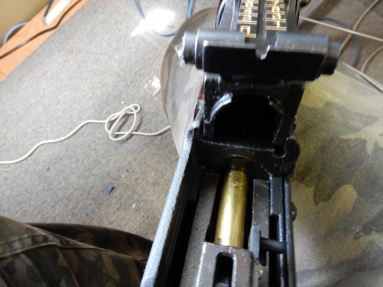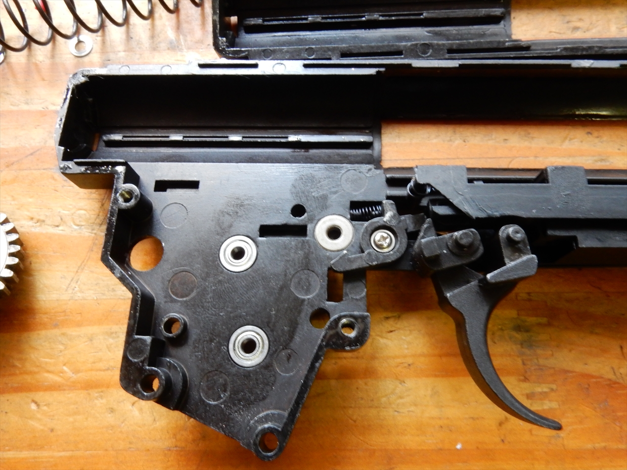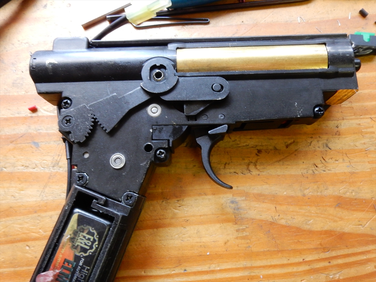 見た目は、肉厚のメカボックスですが、シリンダー周りの歪みっぽいところが目に入ります。