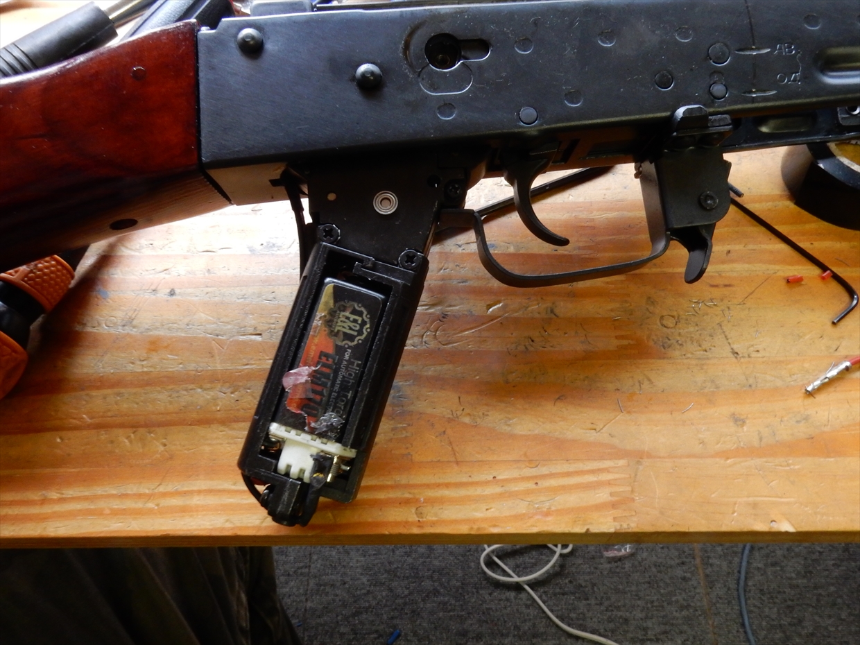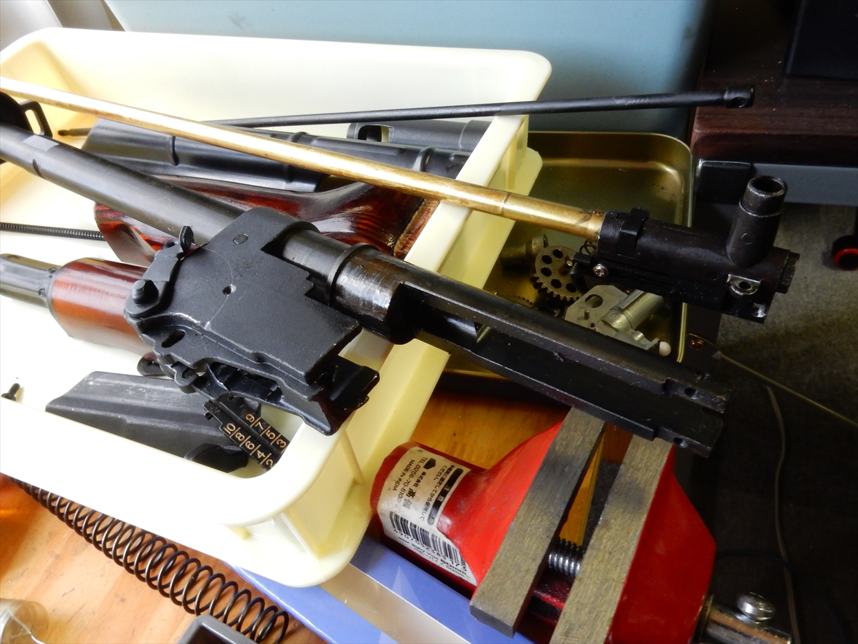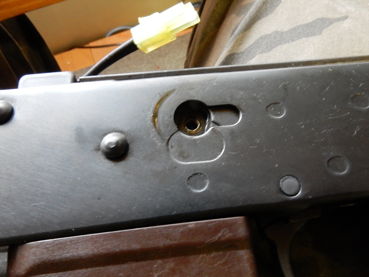 ぶれてますが、AKの最初は、カバーを外して、このメカボックスとチャンバーが結合されているところを外します。