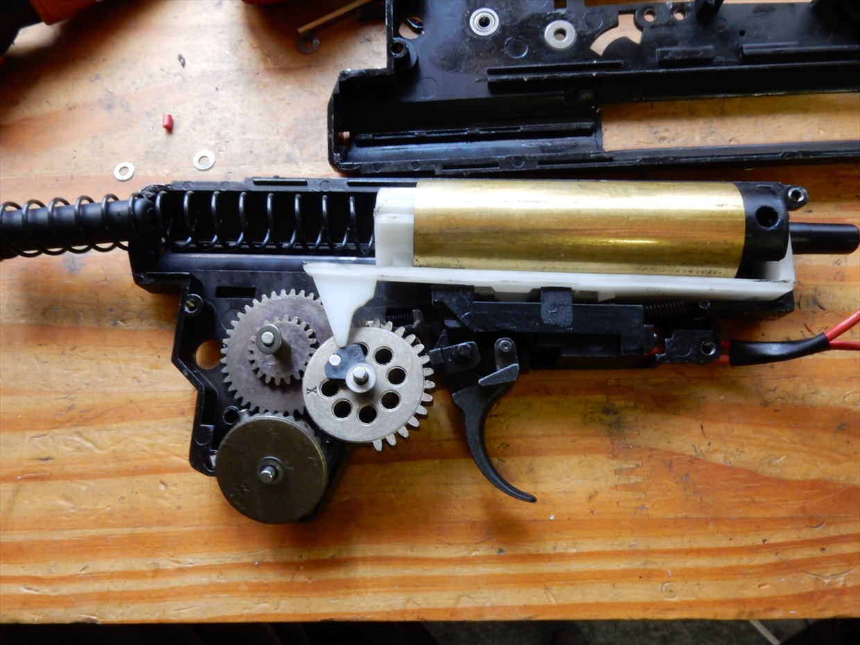 このセクターカットは、連射速度を上げる為よりは、ピストンクラッシュを軽減するのと、弾速調整が主な任務です。