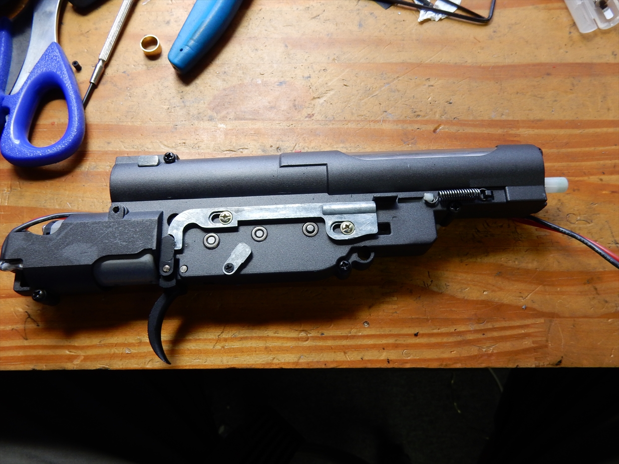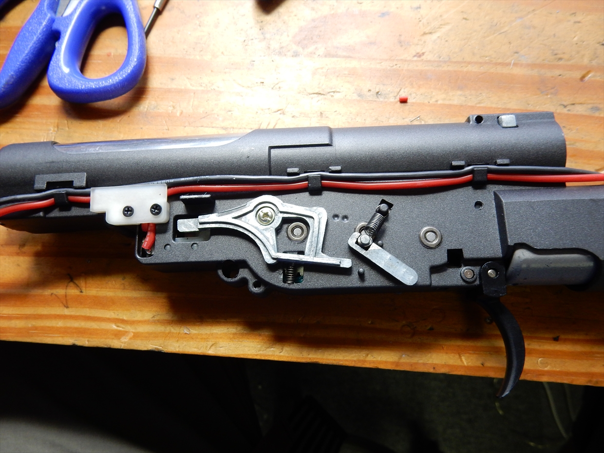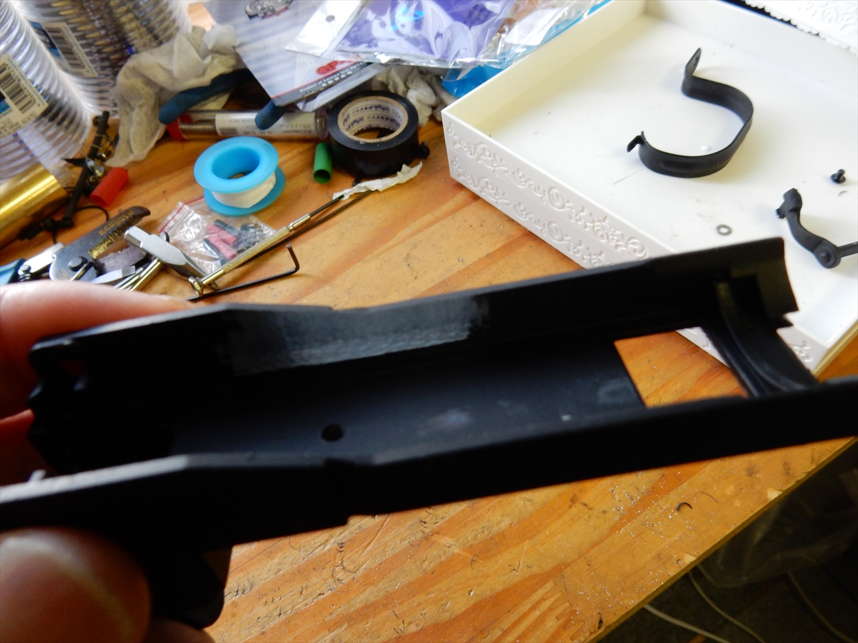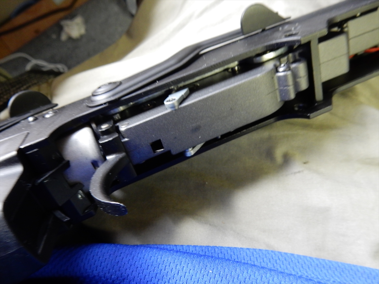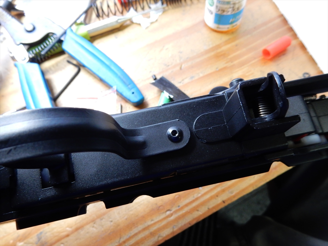 セレクターレバーがトリガー周りのユニットと干渉していたので、削って隙間を作ります。
