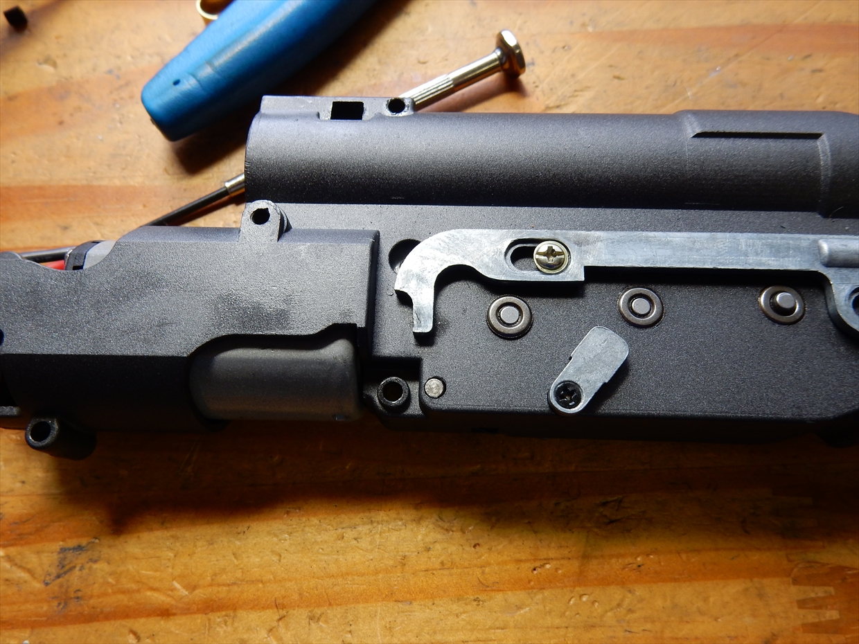 あとは、少し後方に引いて、押し上げると外れます。AKと違いセレクターは分解する必要は無いです。