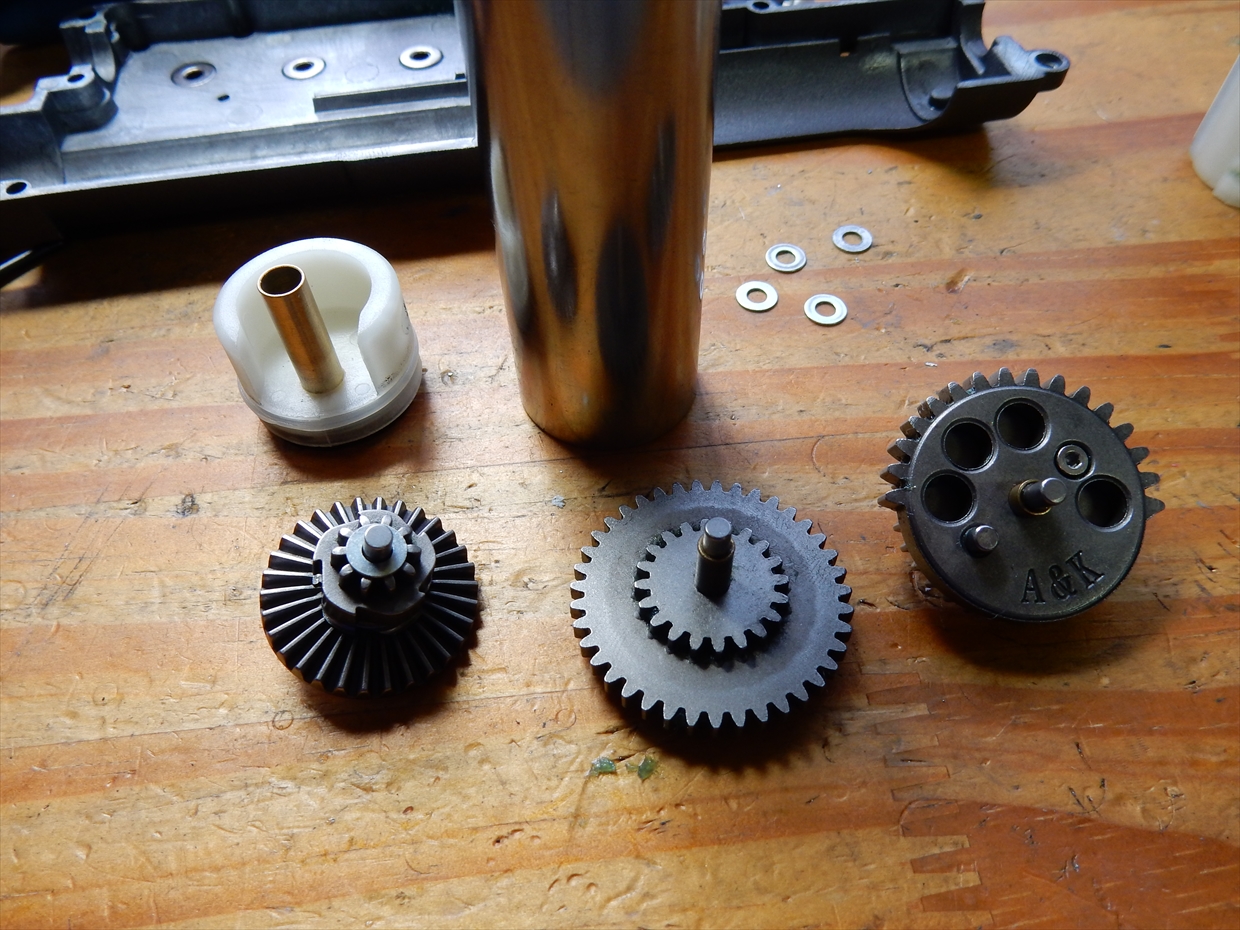 一通り洗浄して、ピスクラ防止の為にセクターギアを3枚落として、シム調整しながら組み込みます。