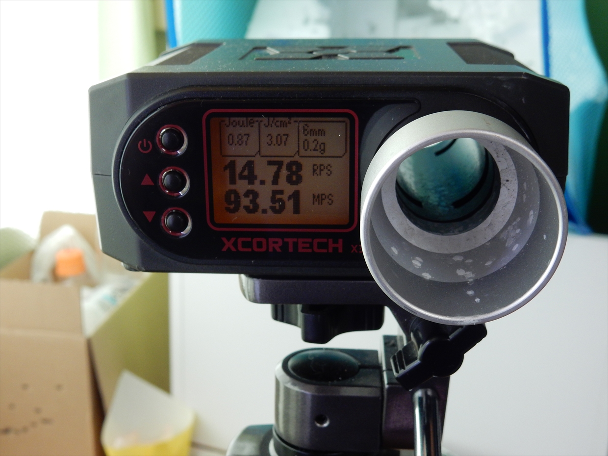 7.4vで計りましたが、十分箱出しで使えるスペックですね。外で30m射撃もしましたが、まっすぐ飛びます。さすがVFC!