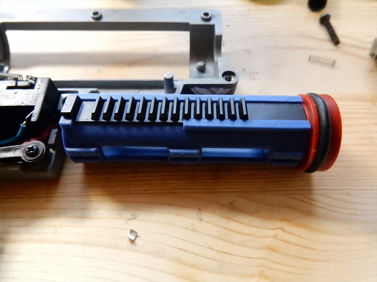 ピストンヘッドは、アルミ製の後方給気型、こちらもエア漏れなし。