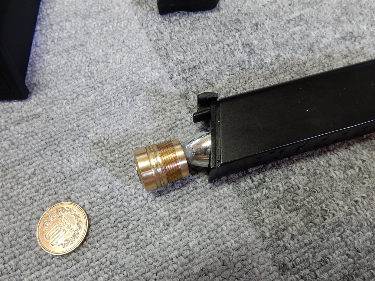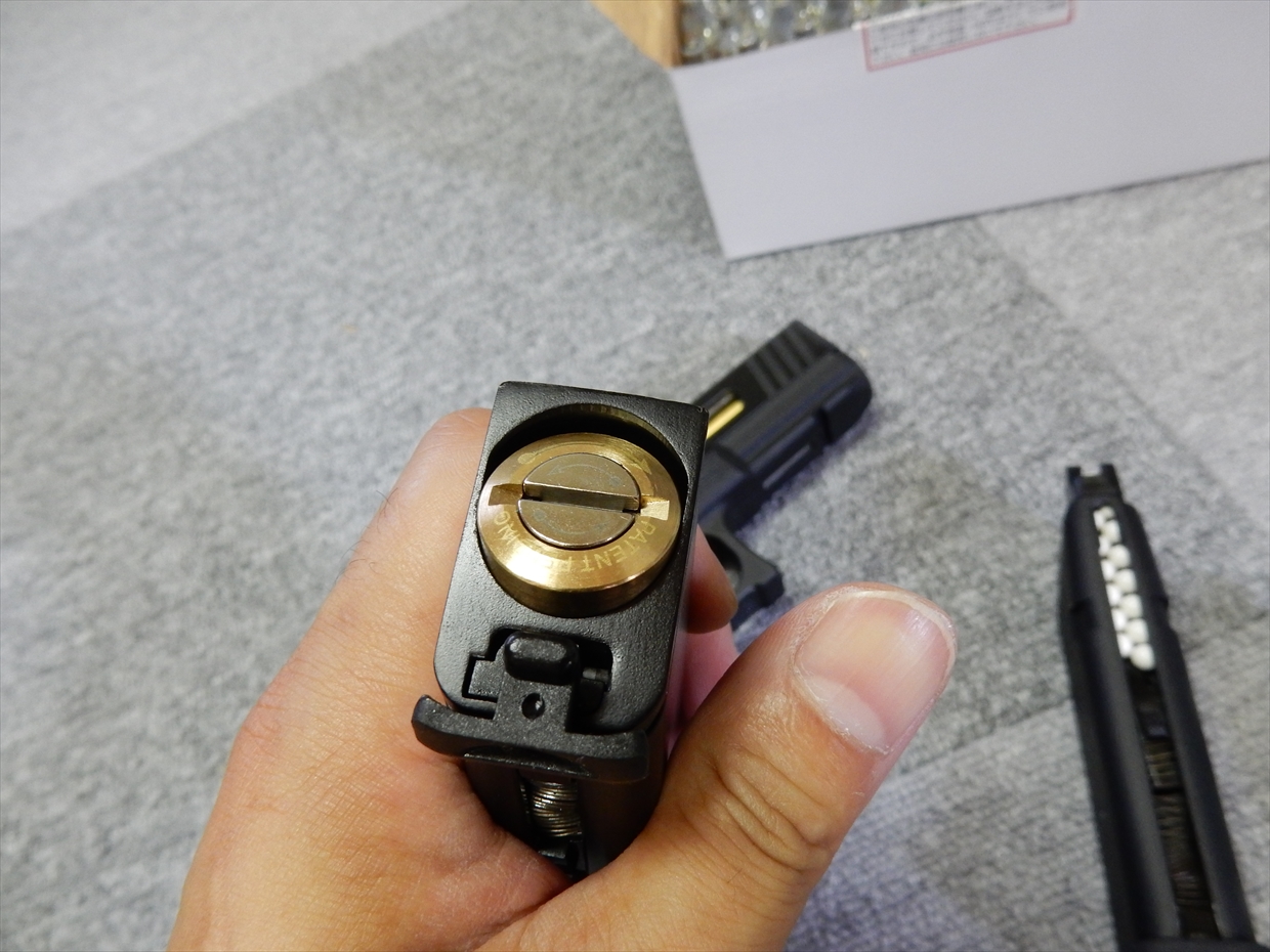 ちなみに、外側がマガジンとの接続で、内側の部分がカートリッジに穴を開けるピンの高さを変更できます。