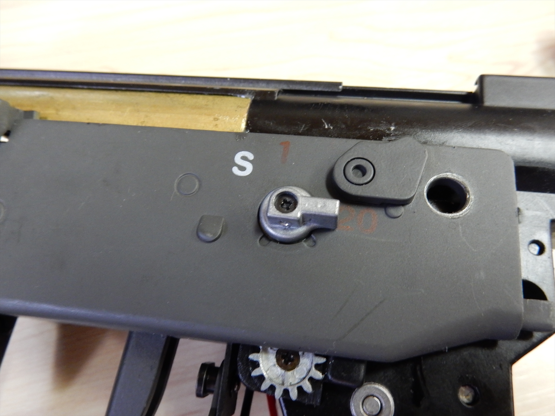 つぎに、マガジンの給弾口部分と、ハンドガードの付け根にあるネジを外します。