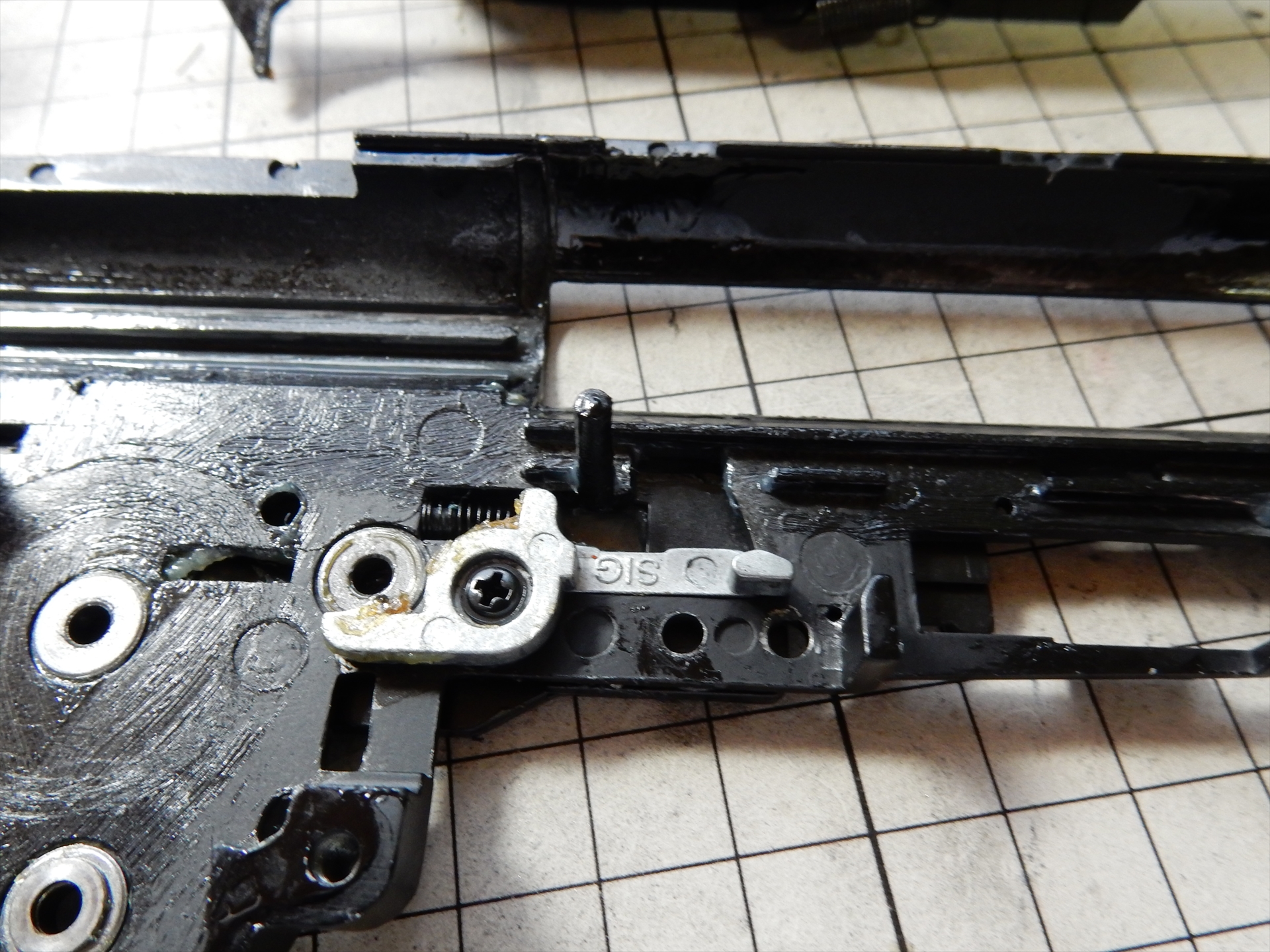 そして、ストックを折りたたんだ所にあるネジを外すとアッパーフレームが外れます。