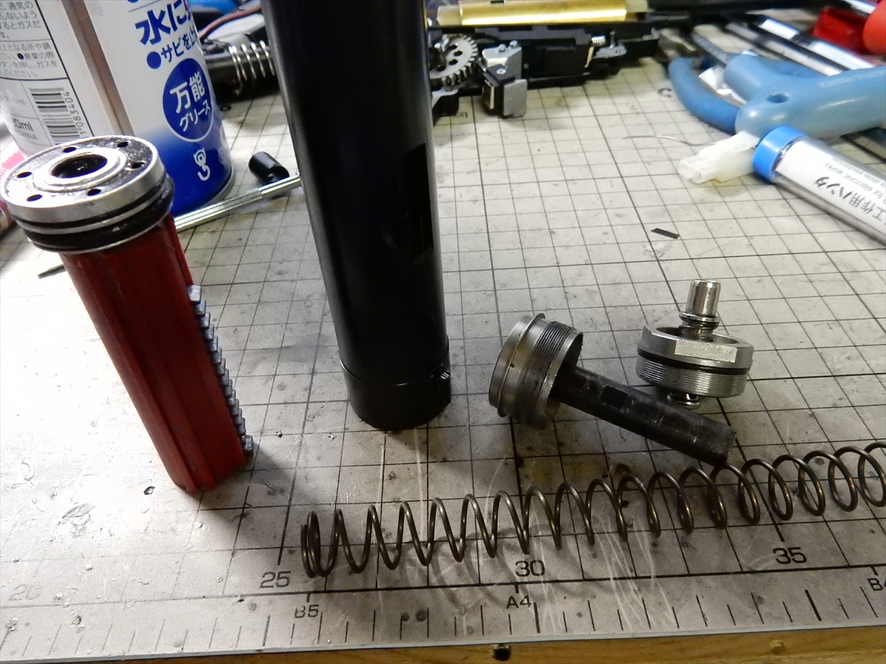 何個かはピストンヘッドのOリングが原因で給弾不良を起こしている個体もあったので、Oリング交換と加工で調整します。