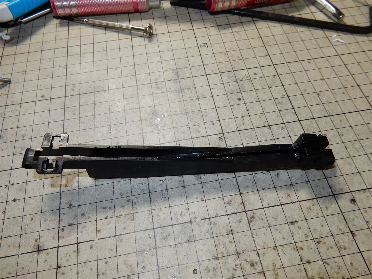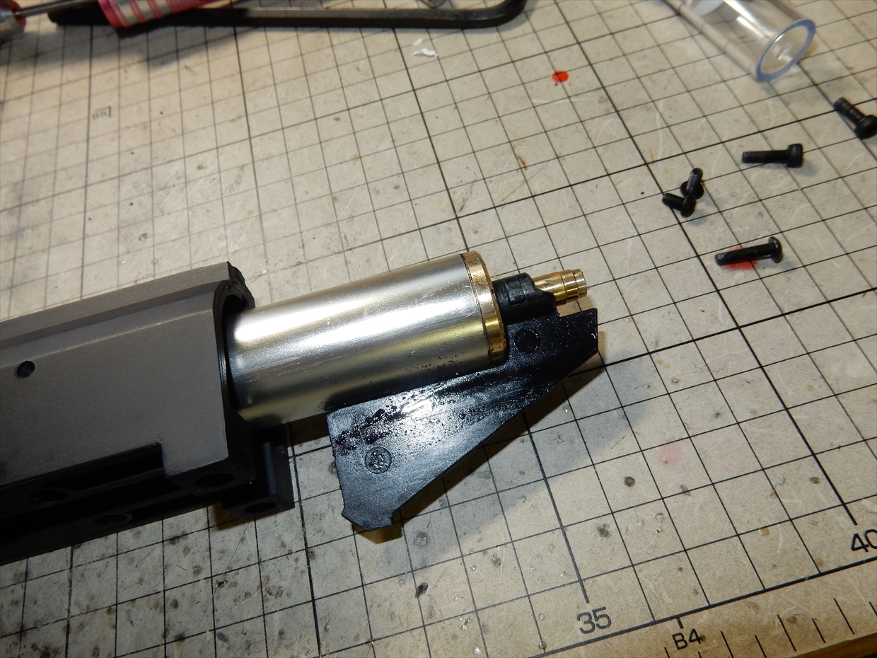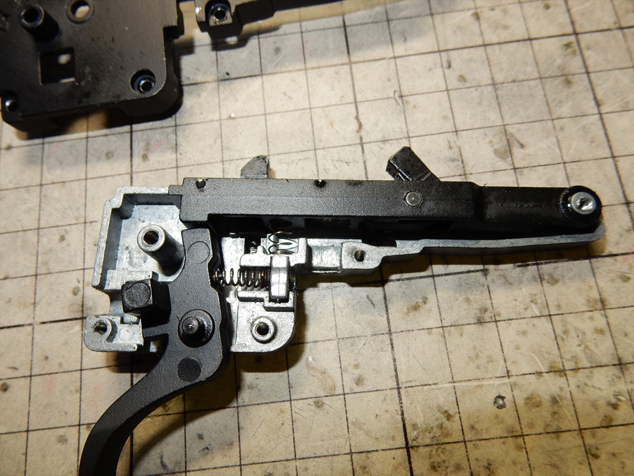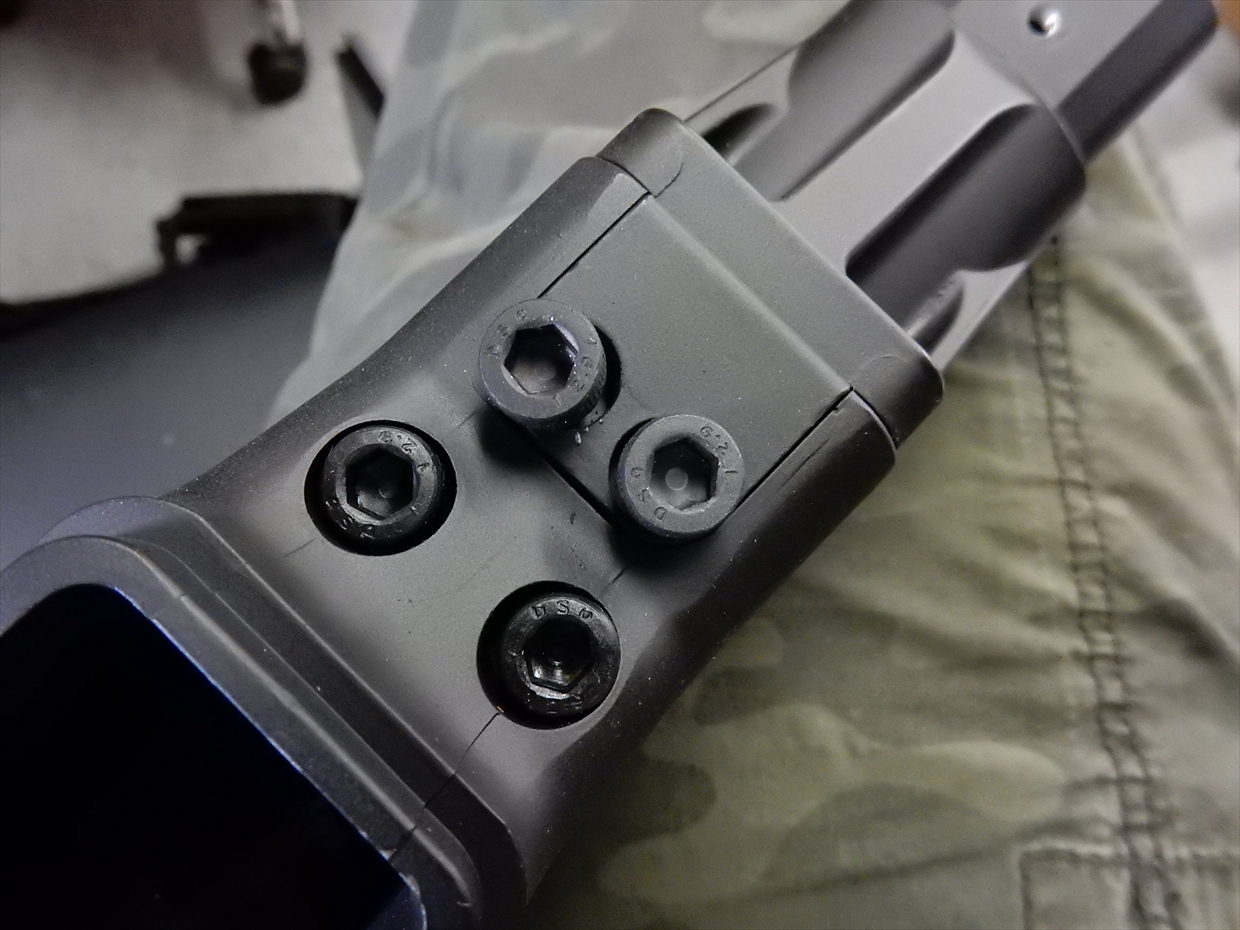 この仕様は、マガジンの位置を実銃の様にトリガーの近くに持ってこれる特徴があるのですが、メンテナンス性は最悪です。
