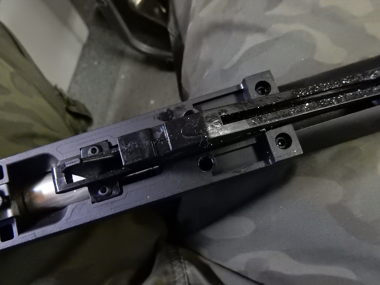 これがあるので、普通のボルトアクションの様にシリンダーを簡単に抜いてクリーニング等ができませんw