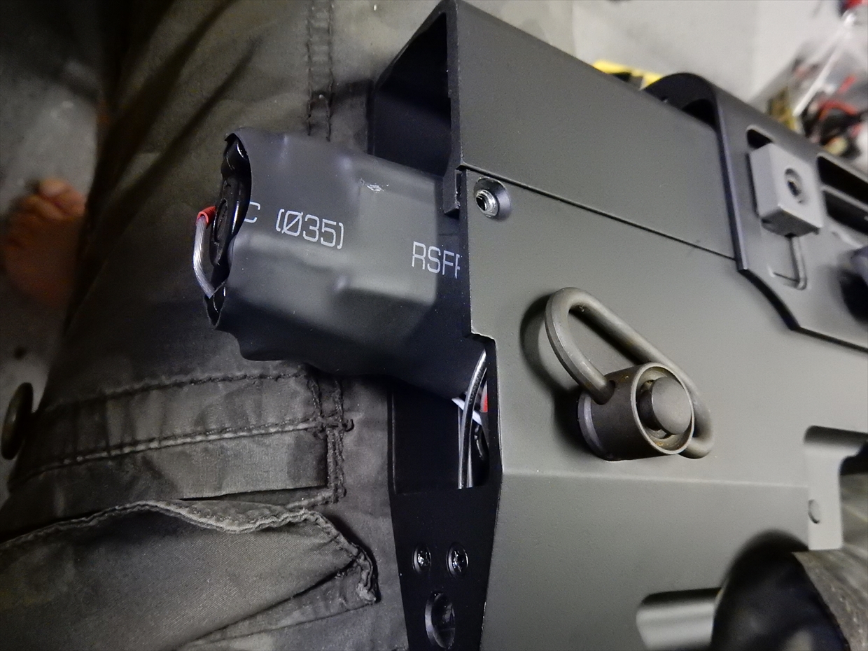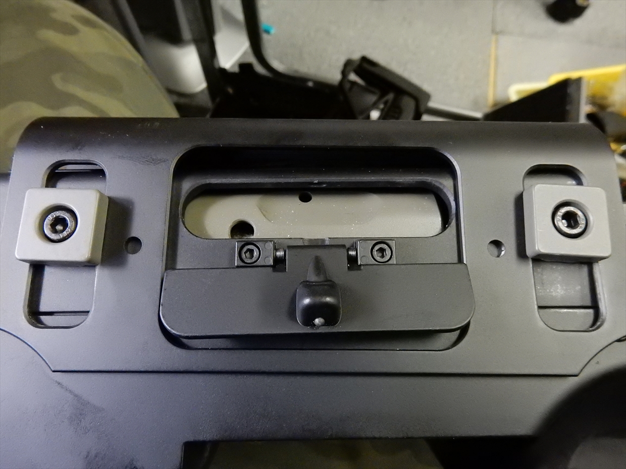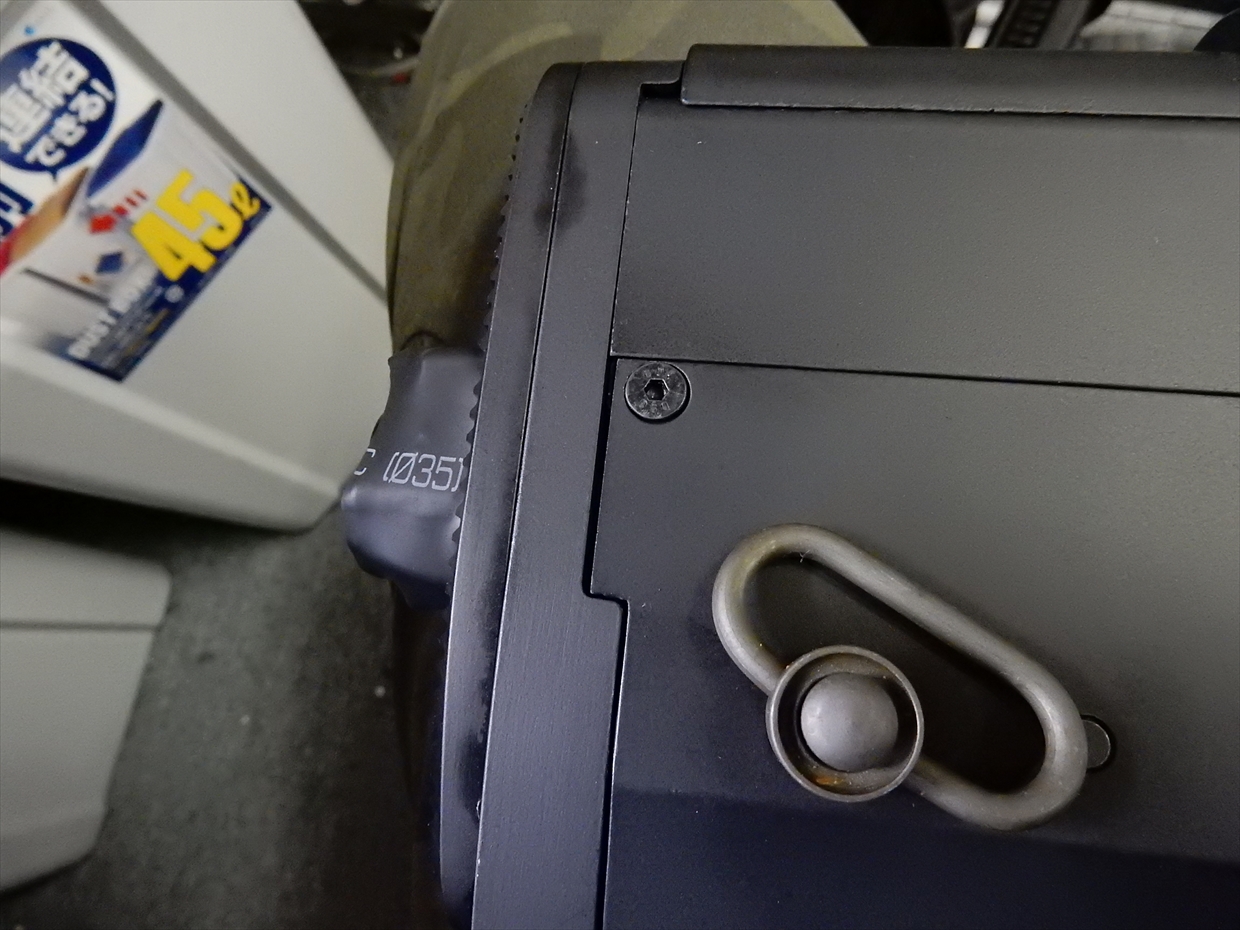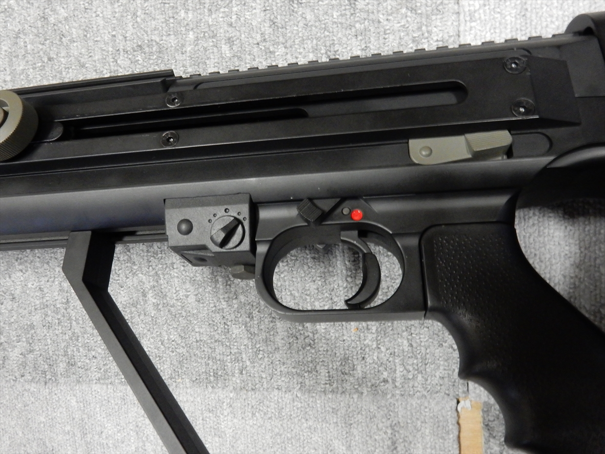 トリガーの上にあるのがセフティで、前方にあるのが、レーザーのボタンとセレクターですが、残念ながら死んでおります。。。