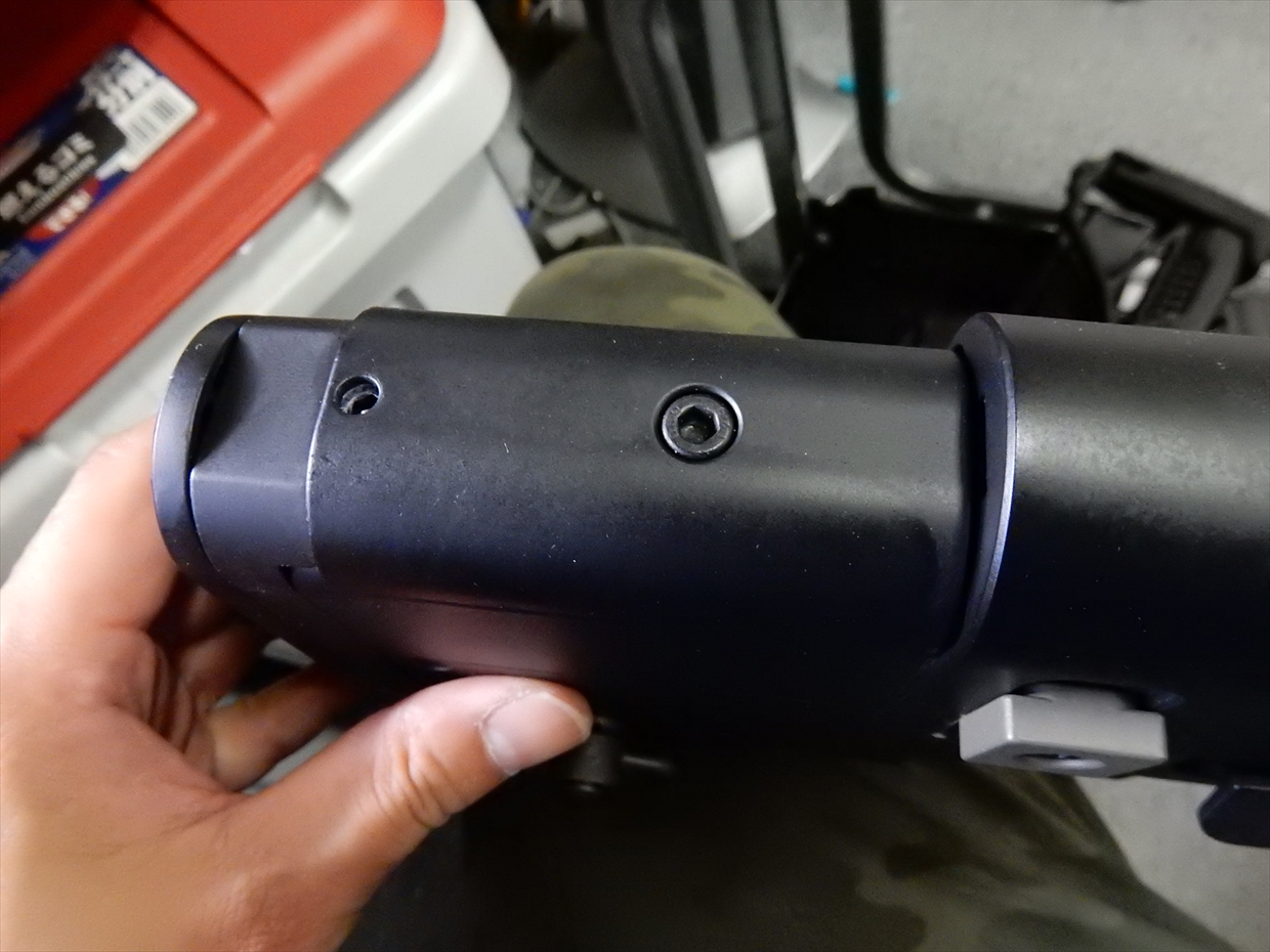 この六角を外すと、カバーが外れ、その中にまた六角があり、それを外すと、ストックの後方部分が抜けます。