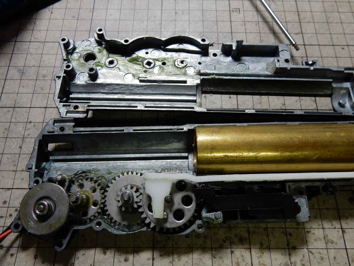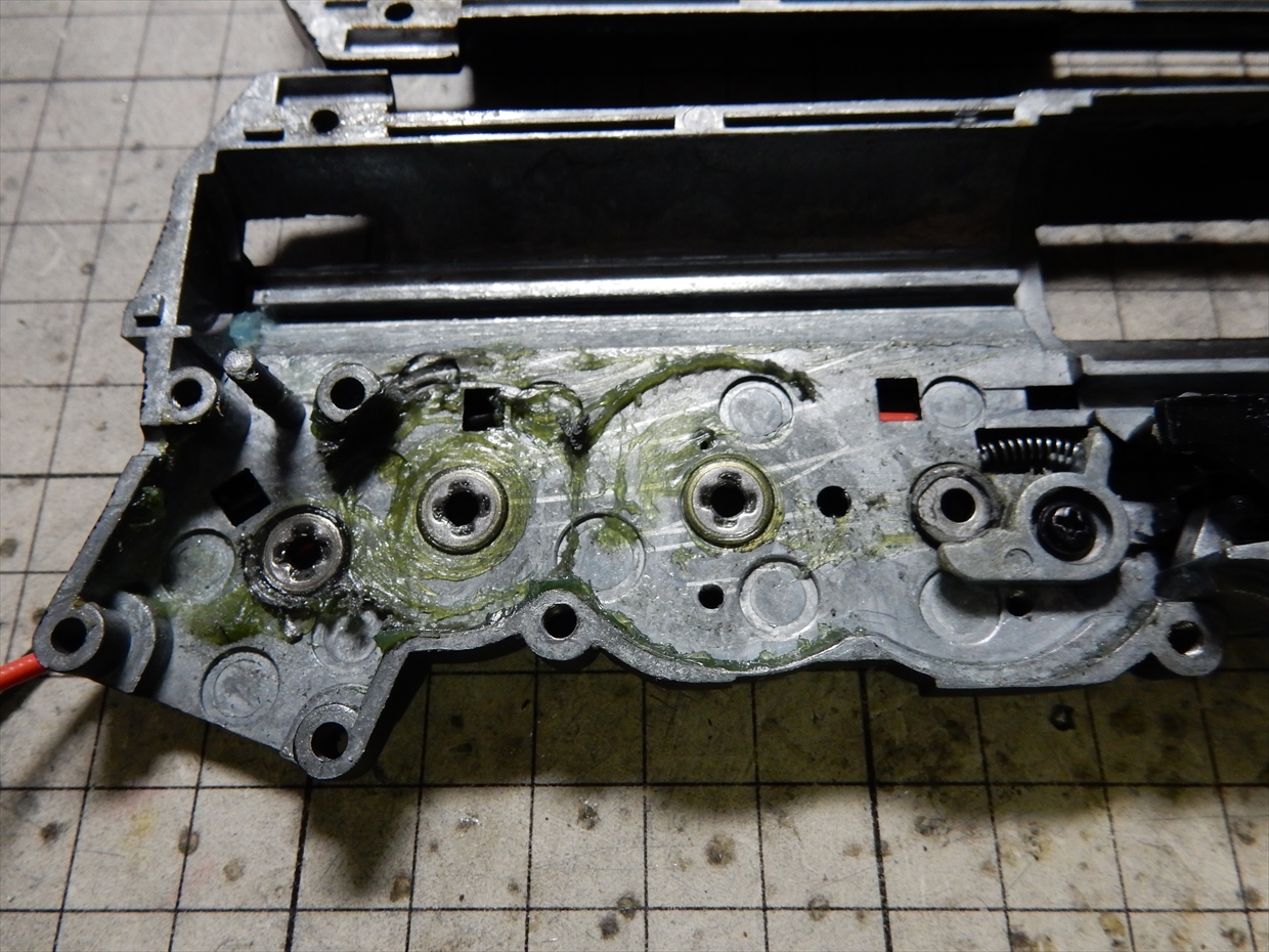 基本的には、ピストンレールの部分はピカピカにして、グリスを塗らない。ギア周りは、あまりピカピカにするとグリスが定着しないのでほどほどに。