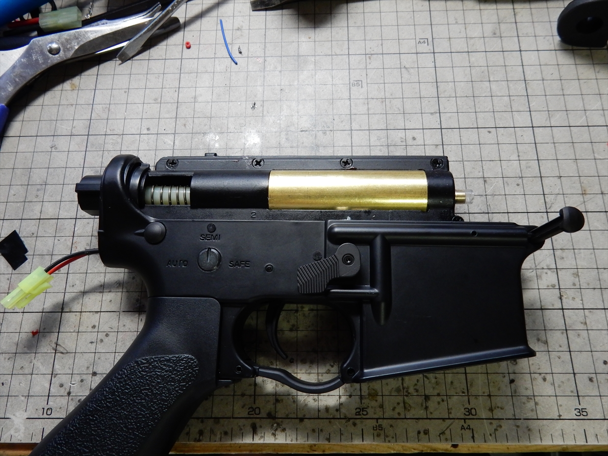 初速は、93m/s前後に調整して、タイトバレルで直進安定性を出しているので、セミオート主体のカスタムです。