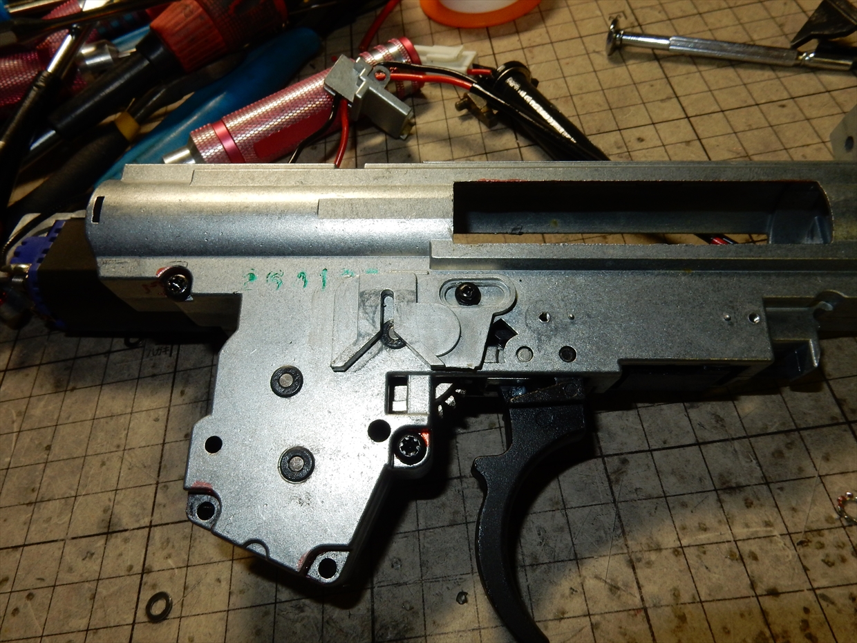 東京マルイのメカボックスは、ネジ締めをしてもあまり変化が無いので、助かりますね。