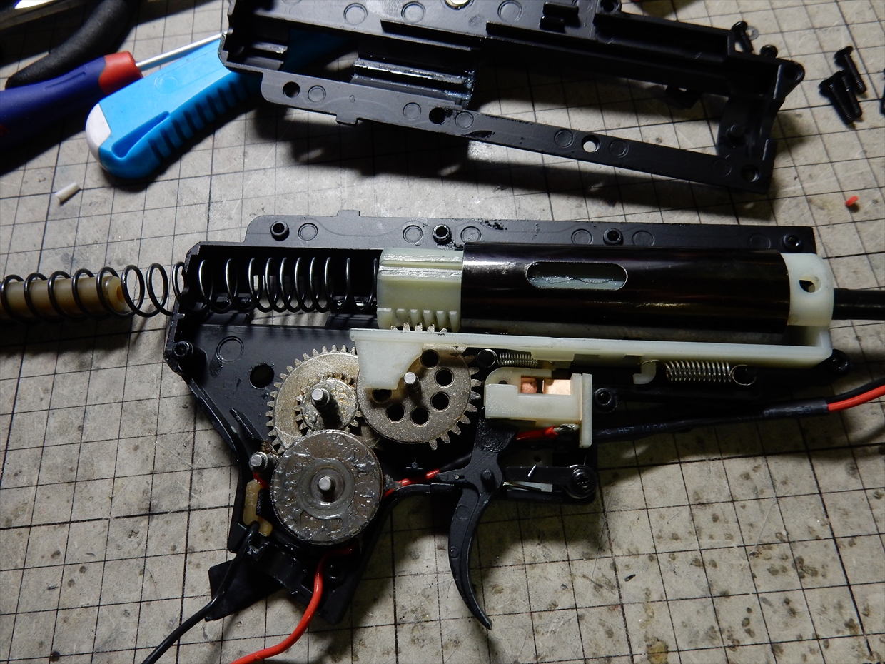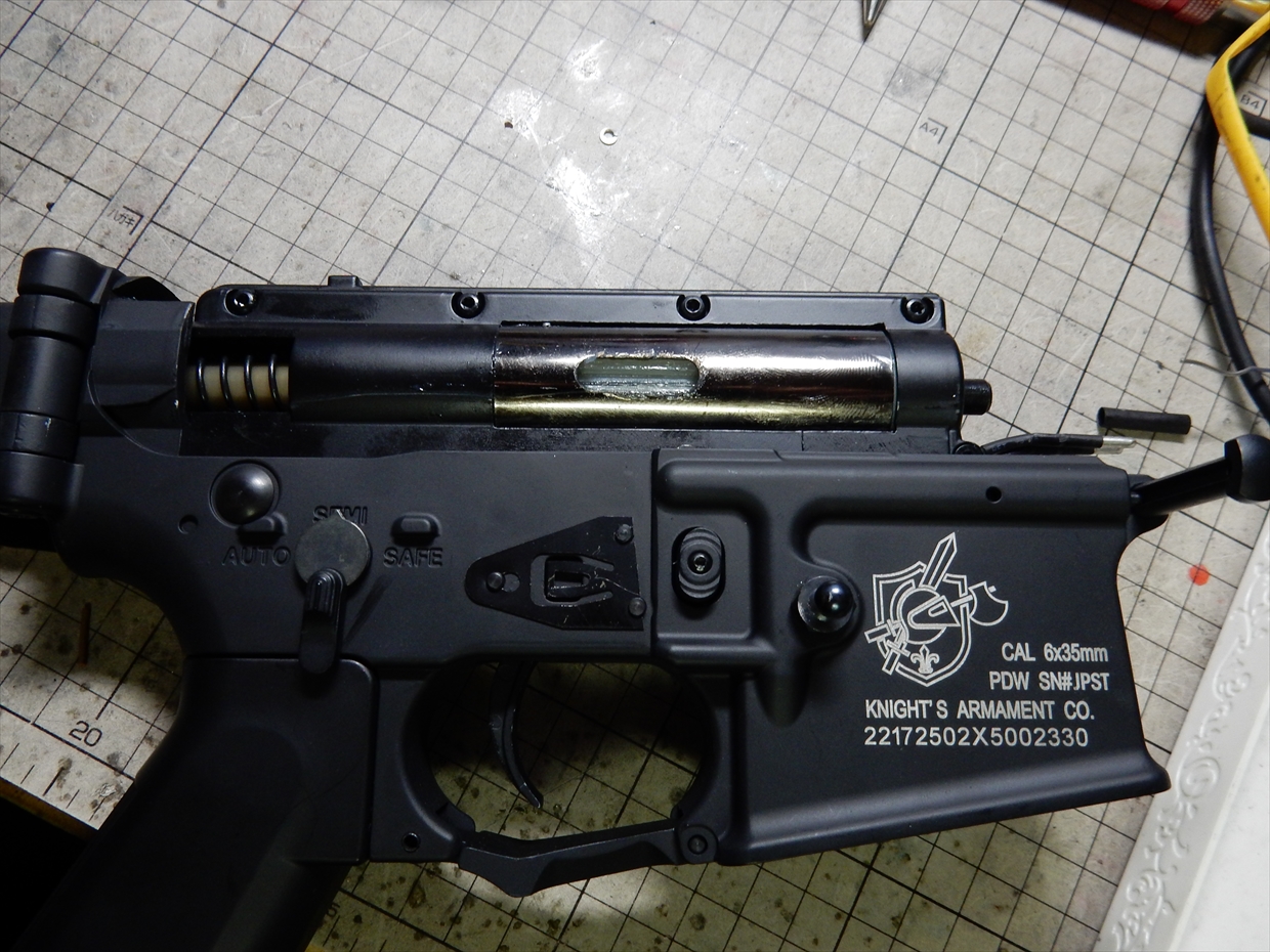 今回は、うちのチーム員が購入したM4PDWのフルメタルを11.1vで稼働しても壊れない仕様にしてくれとの事です・・
