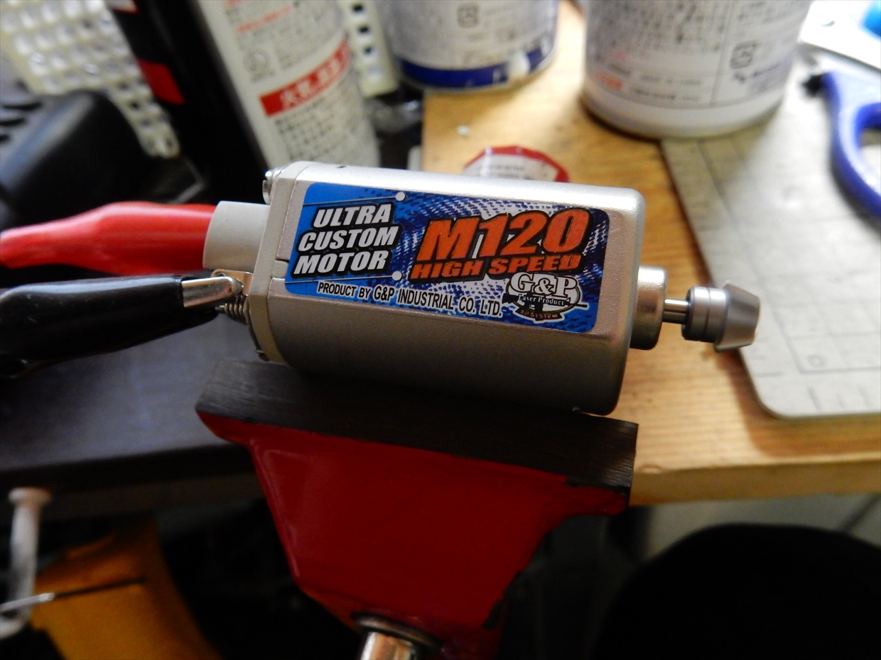 今回ハイスピードギアを組むので、メカボックスとの相性を見ながら実際にモーターで回転させて、調整していきます。