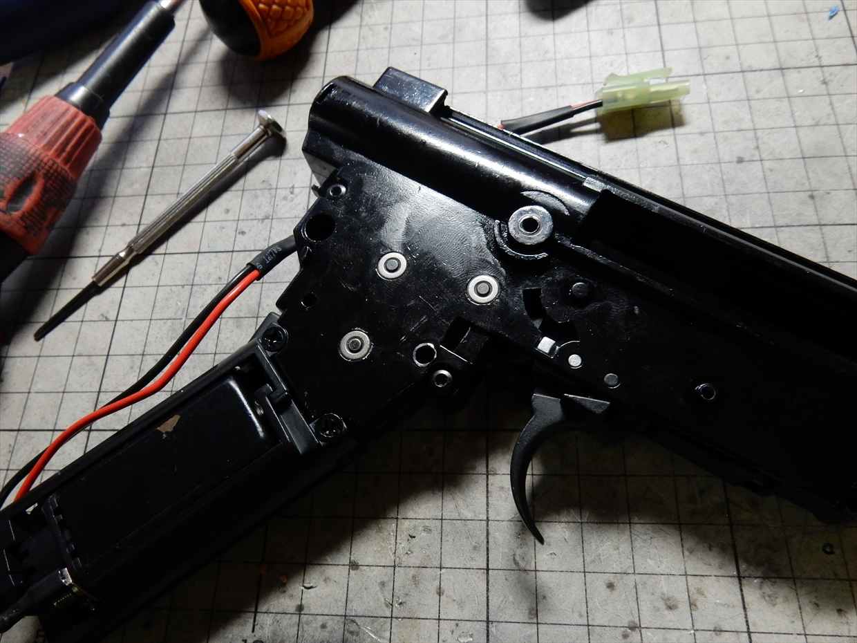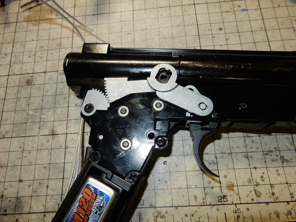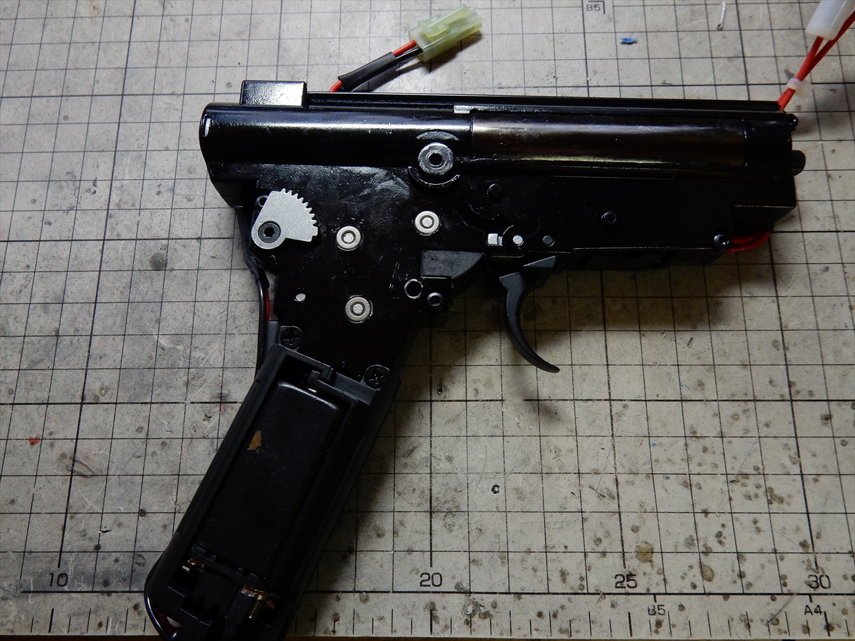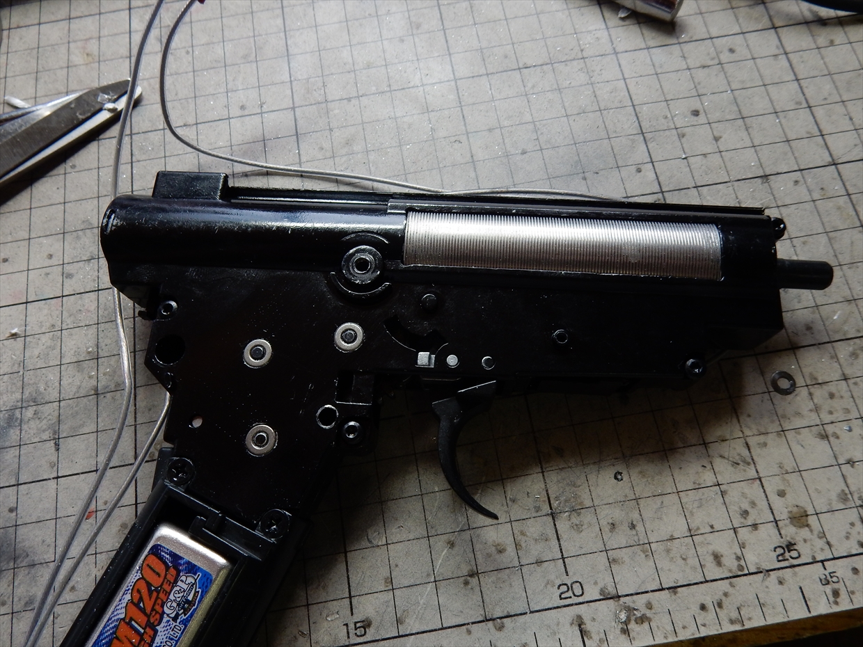 11.1vの仕様で、初速が96m/s、連射速度が35発/sと、ゲームで使うときれっきれの仕上がりになりました。