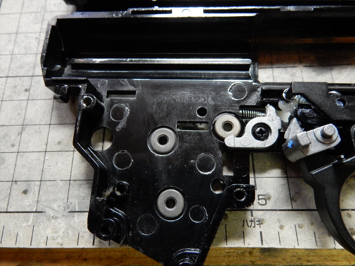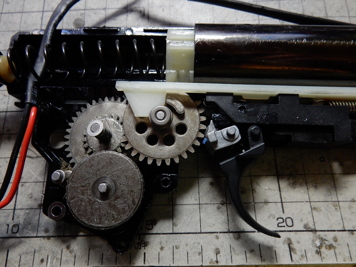 元々付いていたシリンダーですが、仮組して試射していると、どうも少しねじれているみたいで、打撃音が少し変だったので、どうせなら放熱型シリンダーと言う事で交換ですw