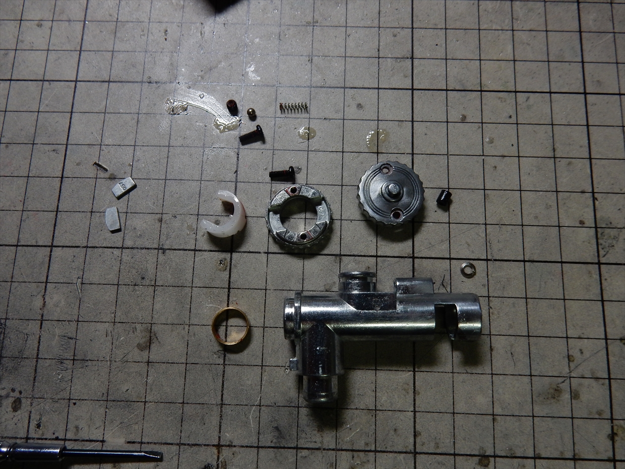 チャンバーも、ネジロック剤や白カビみたいなもので、いっぱいなので、クリーニングしながら調整して組み直します。