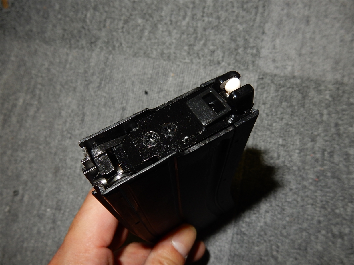それはさておき、このマガジンの一番問題はマガジンリップが亜鉛ダイキャスト製って事です。これって絶対にBB弾きずつきますよ。50発挿入のスプリングテンションに強度的に樹脂が持たなかったのかよくわかりませんが、メーカーさんになんとかしていただきたいです。現状ではダイキャストパーツを外して内側からエッジ部分を少しだけ面取り加工する位しか対策が出来ません。これもやりすぎるとマガジン内BB弾がホールドできなくなるので難しい調整ですね。