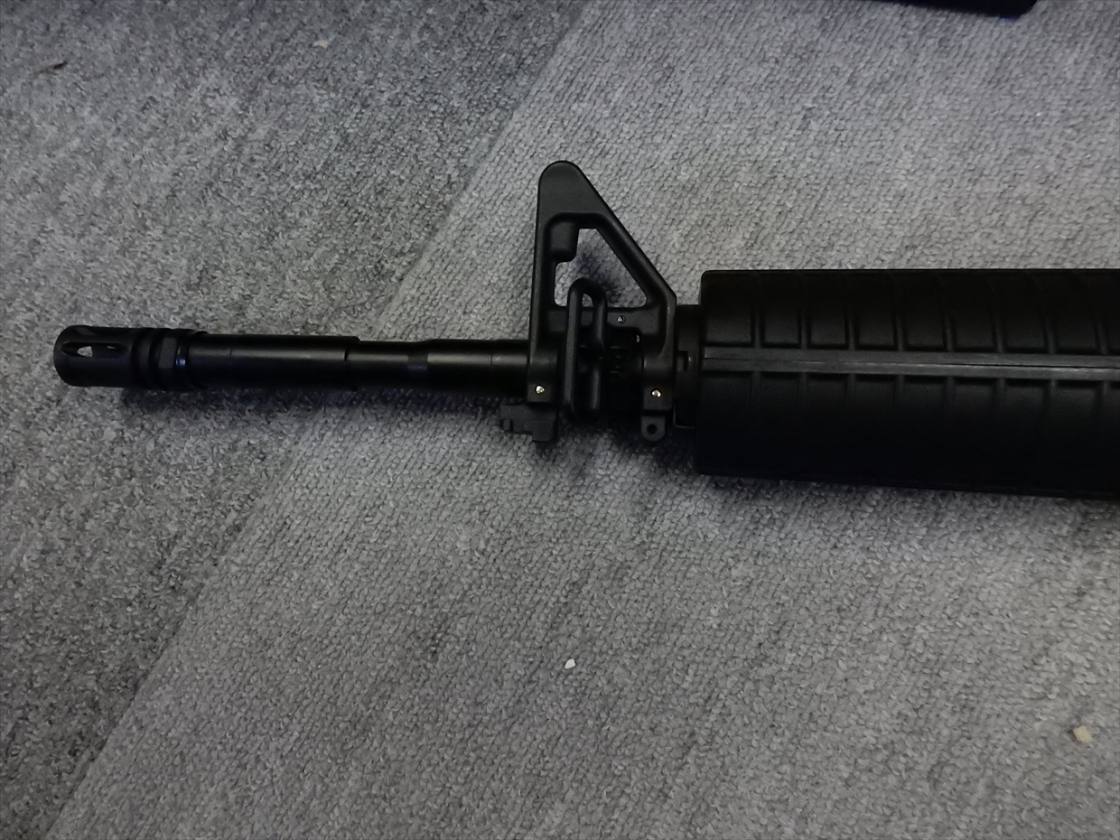M4A1は、14.5インチサイズで、脱着可能なキャリングハンドルが装備されているのが特徴です。キャリングハンドル・ストックチューブ・アウターバレルは金属製