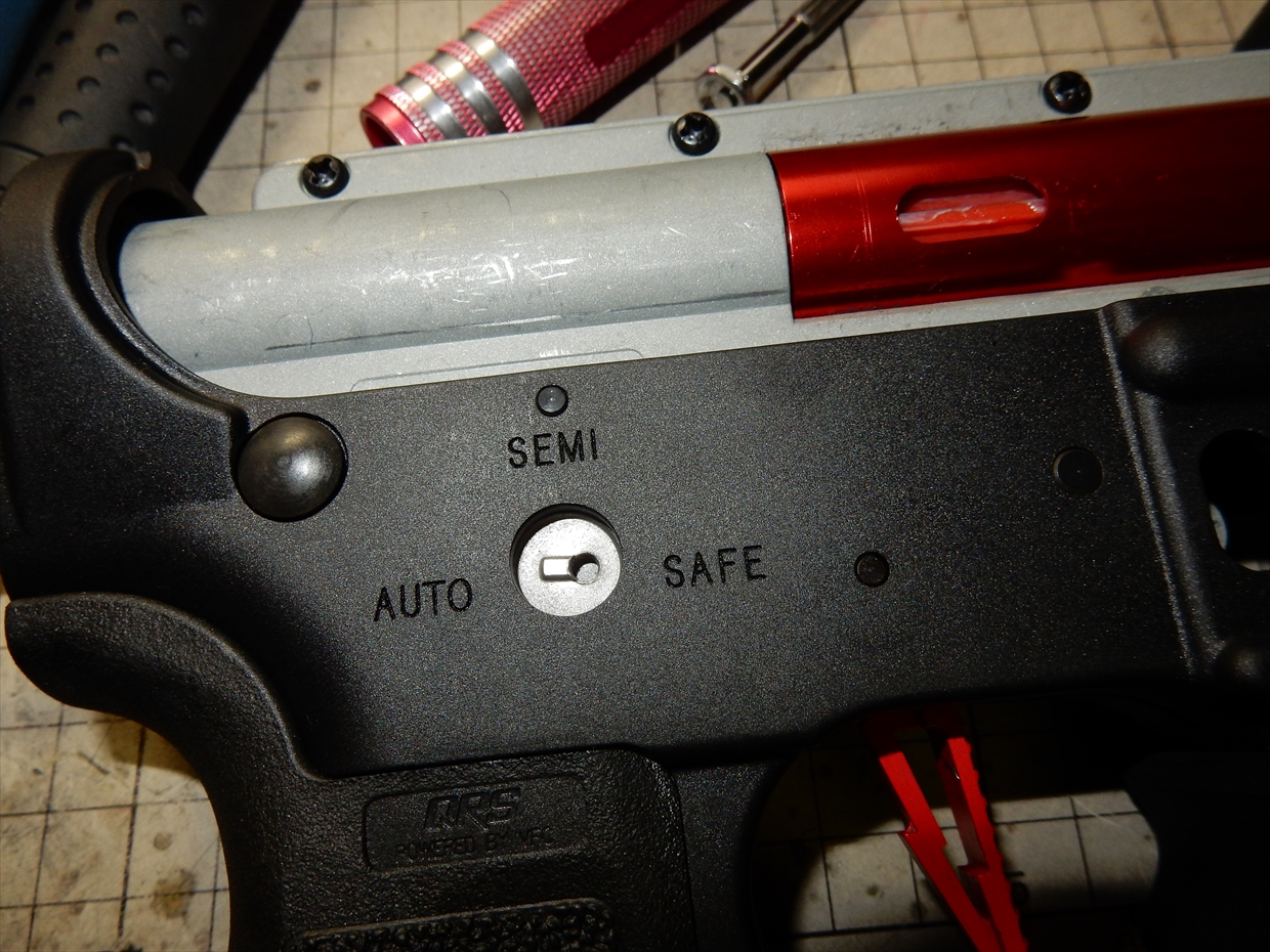 このメカボックスはQDシステムで、スプリングを後方から交換が可能なのですが、M4レシーバーが対応しておらず、結局メカボックスを取り出さないとスプリング交換はできませんw
