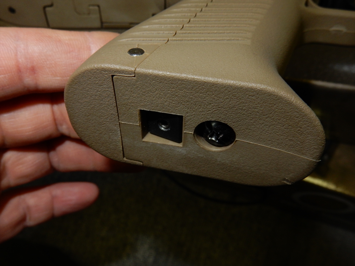 チャージングハンドルを引くとボルトが後退して、ホップ調整ができます。