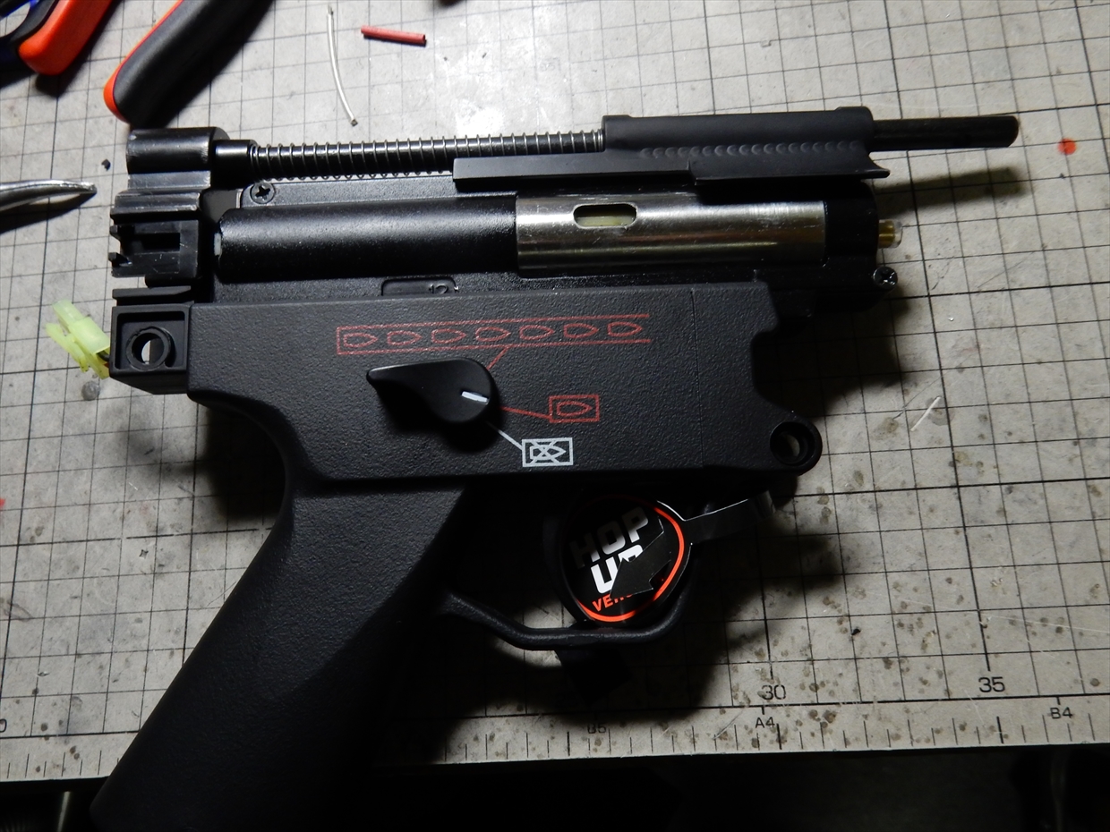 疑似ブローバックが付いていますが、今回はピストン交換するので、たぶん動かないかと思います。