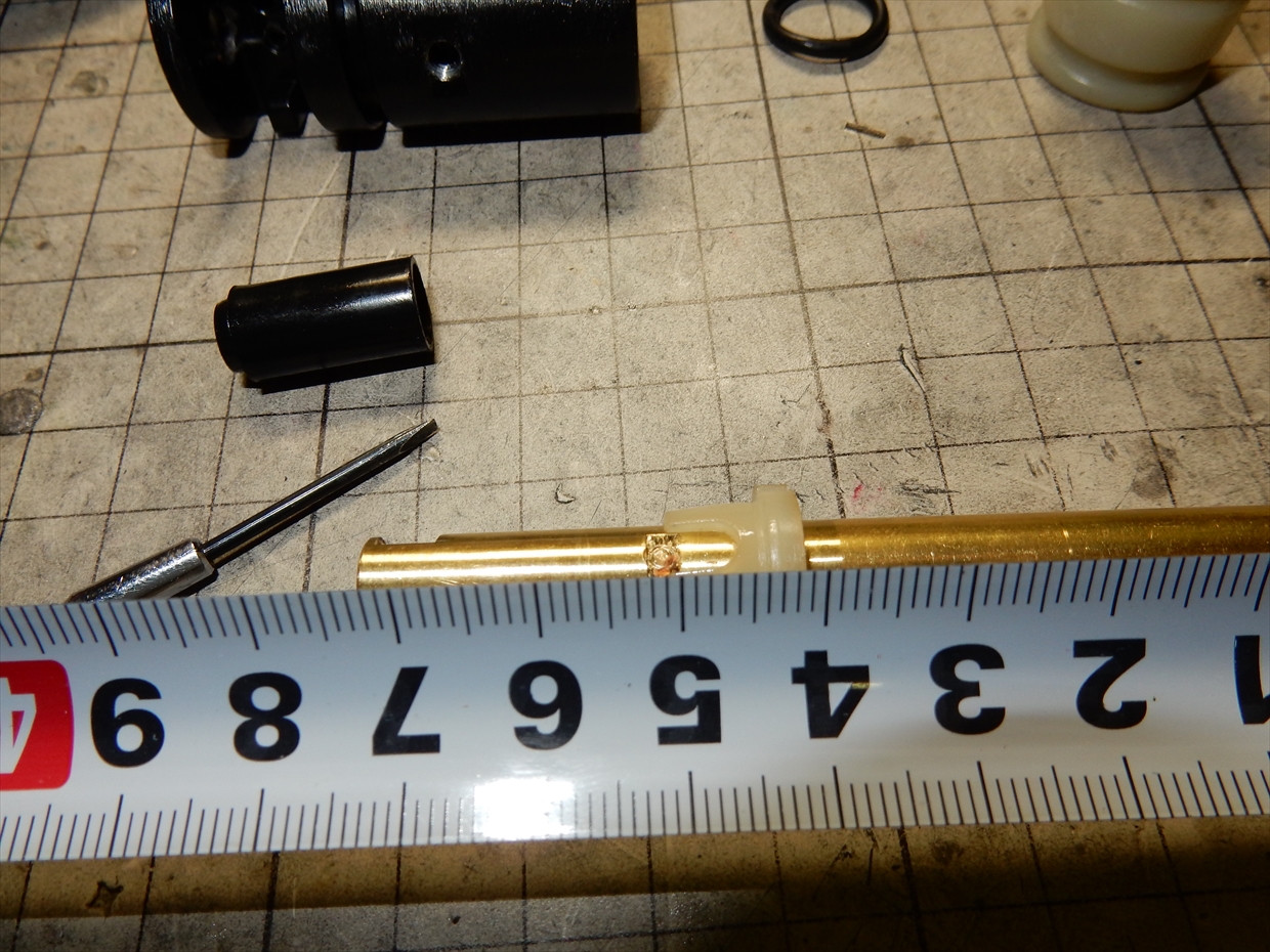 ただし、調整は、マガジンを抜いて、シリンダーを引いた状態で、マガジン側からイモネジを時計回りに回すと、ポップが緩くなり、反時計回りで強くなります。