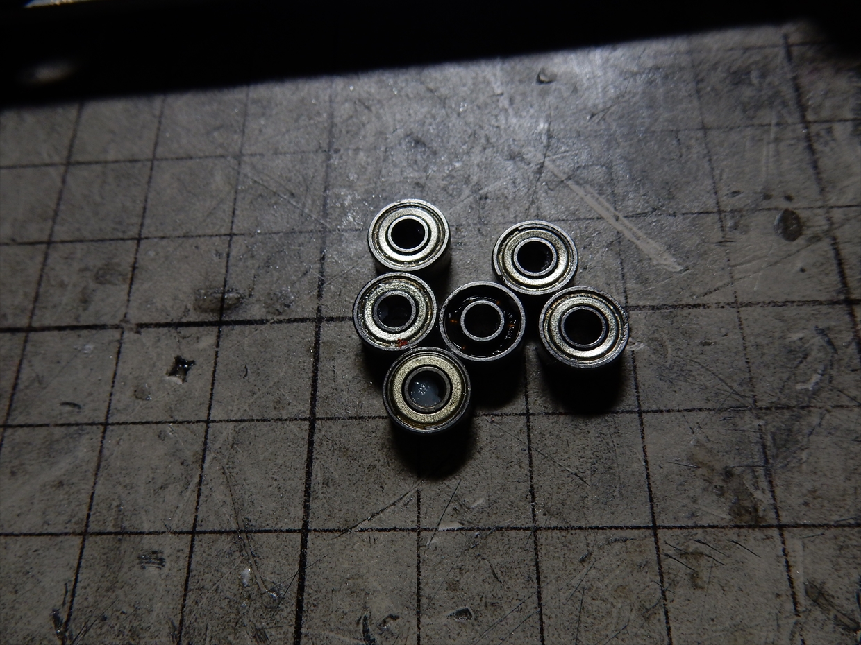今回、軸受けは、ノーマルを使う予定でしたが、既に1個破損(シールドが外れてベアリングむき出し状態)してたので、工業用のスチールシールド付きに