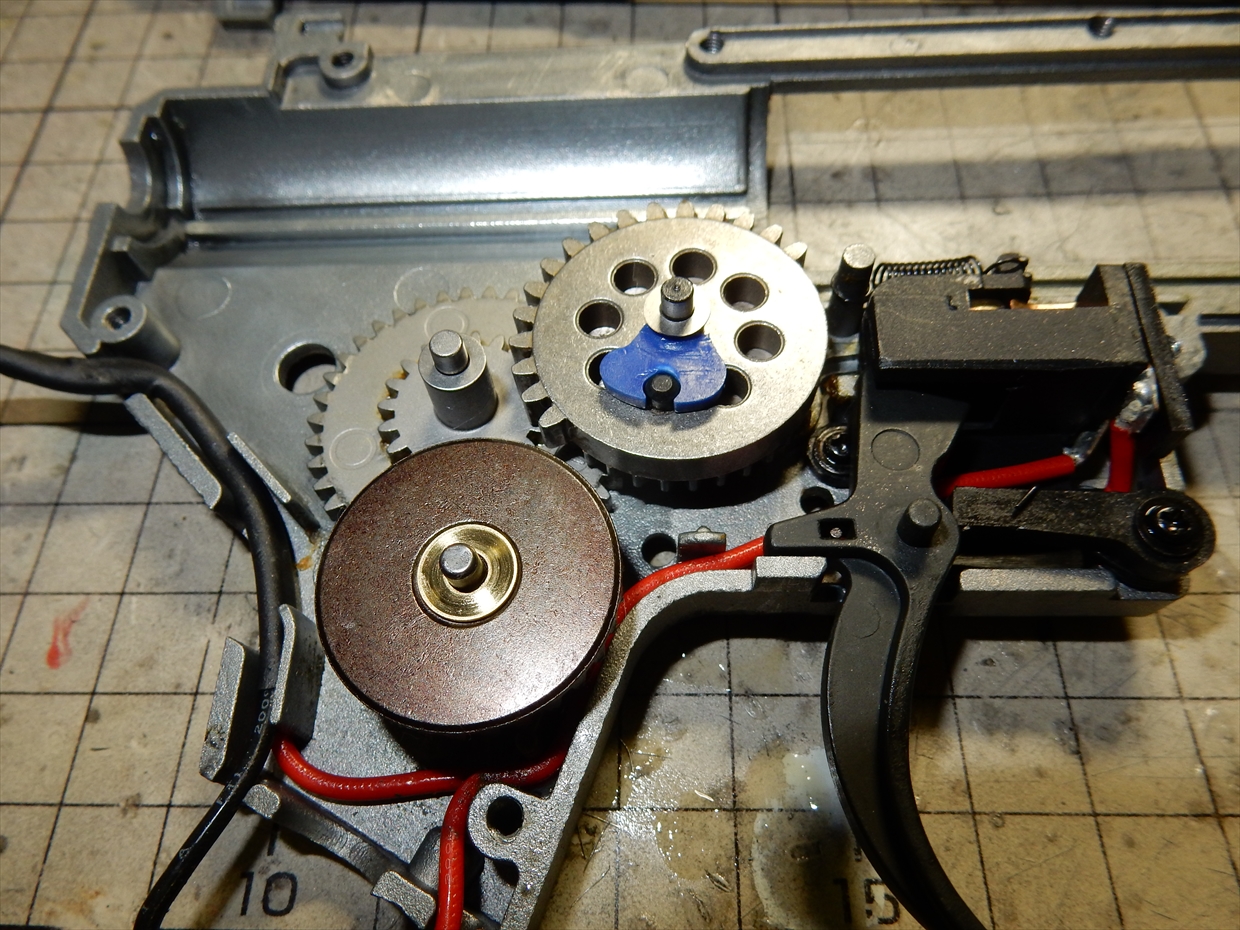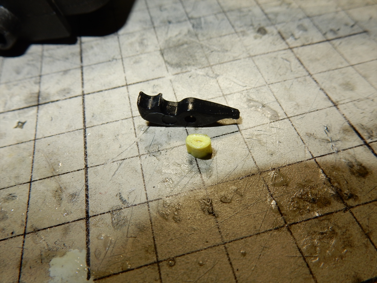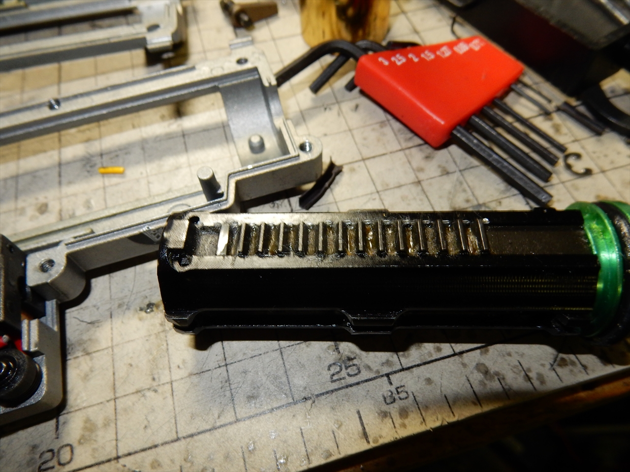 リアルショックなので、セクターギアを落とせないので、ピストンの3枚目をカット、4枚目をハーフカットします。