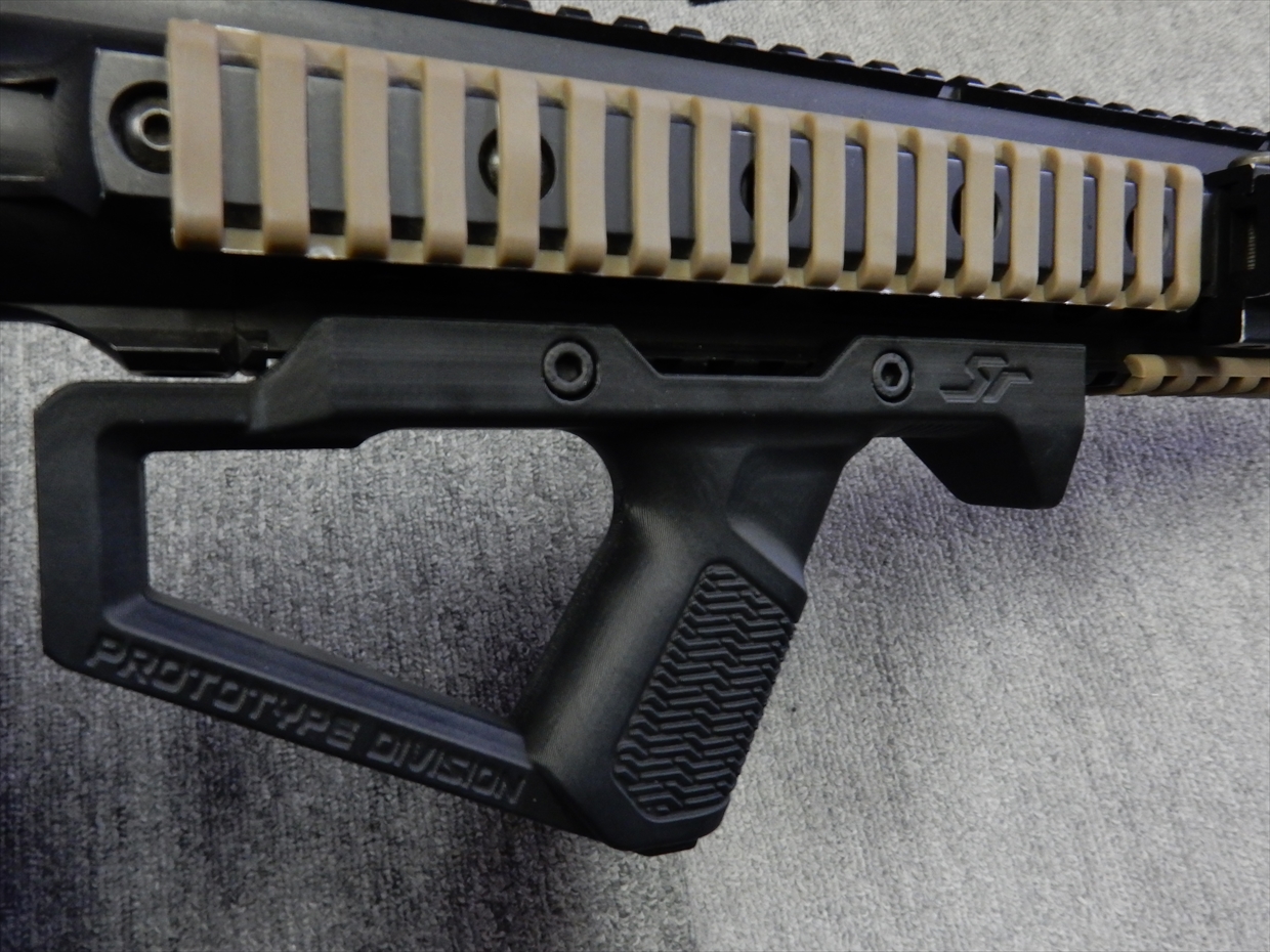 ストックは、ICSのDMRストックを組み込み、ハンドガードのグリップは、SRU SR-Q タクティカルフォアグリップを付けています。