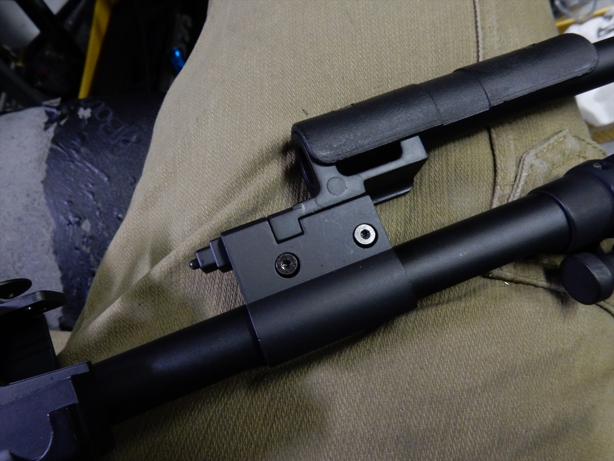 バイポットは、ロシア系でおなじみのクリップで2本を固定しています。