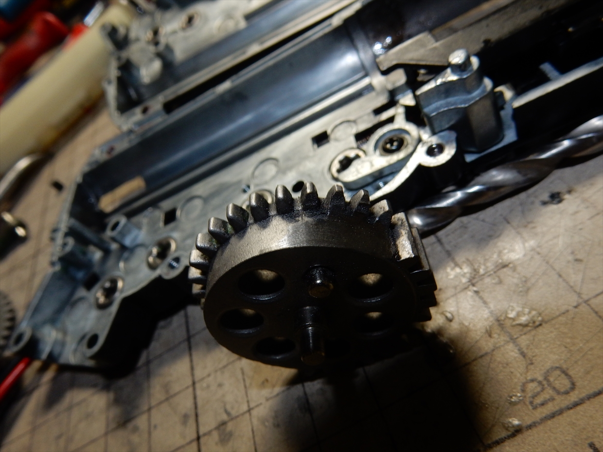 全部カットするとスパーギアが掛からないので、慎重にカットしていきます。