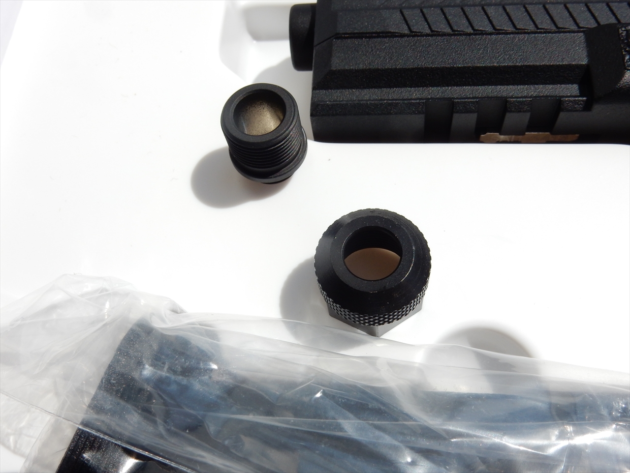 11mmの正ネジ?WEについている物と、先端に14mmの逆ネジが付いています。