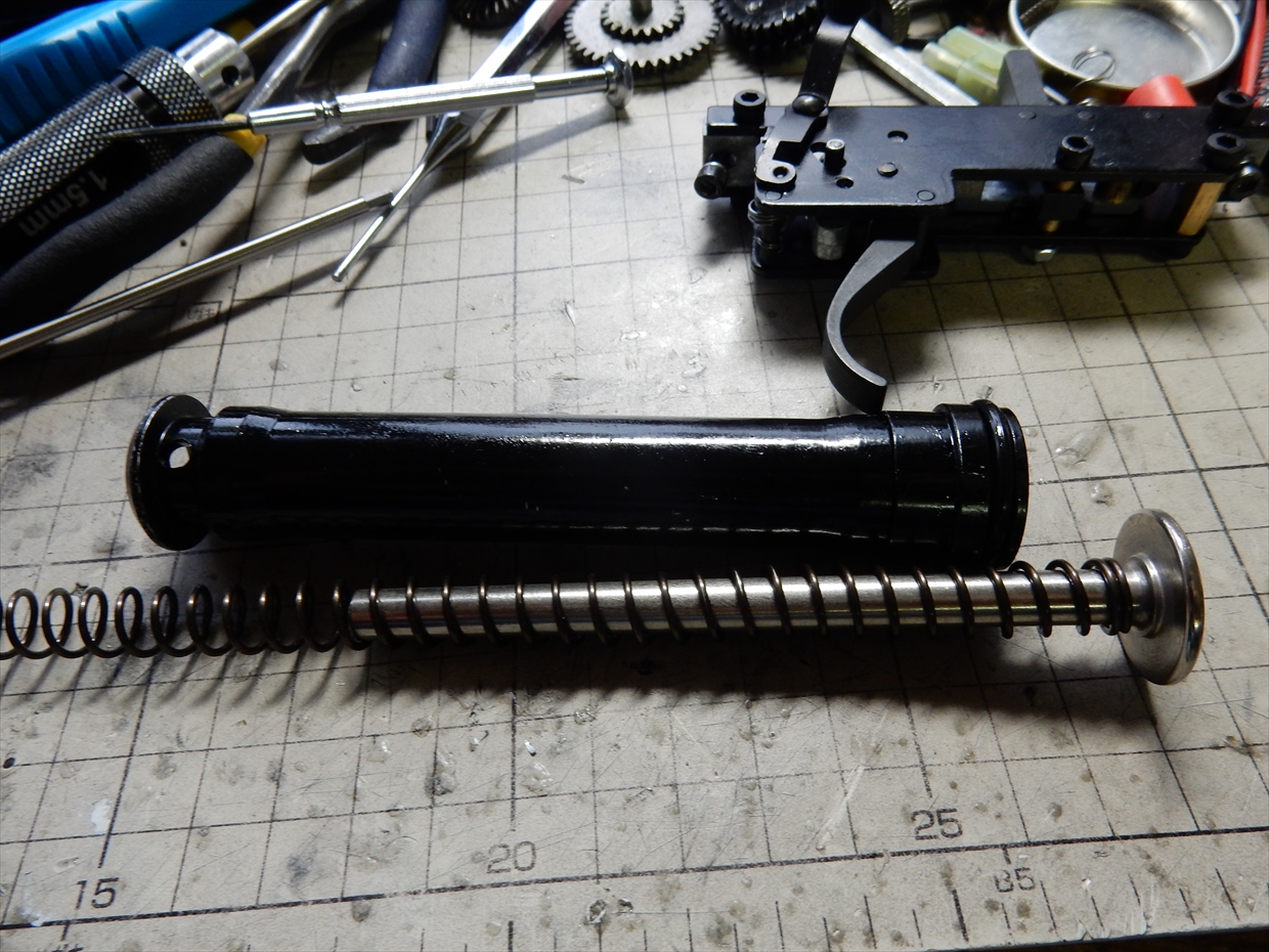 基本的にトリガーユニットをレシーバーから外さないと、シリンダーが抜けない仕様ですね。