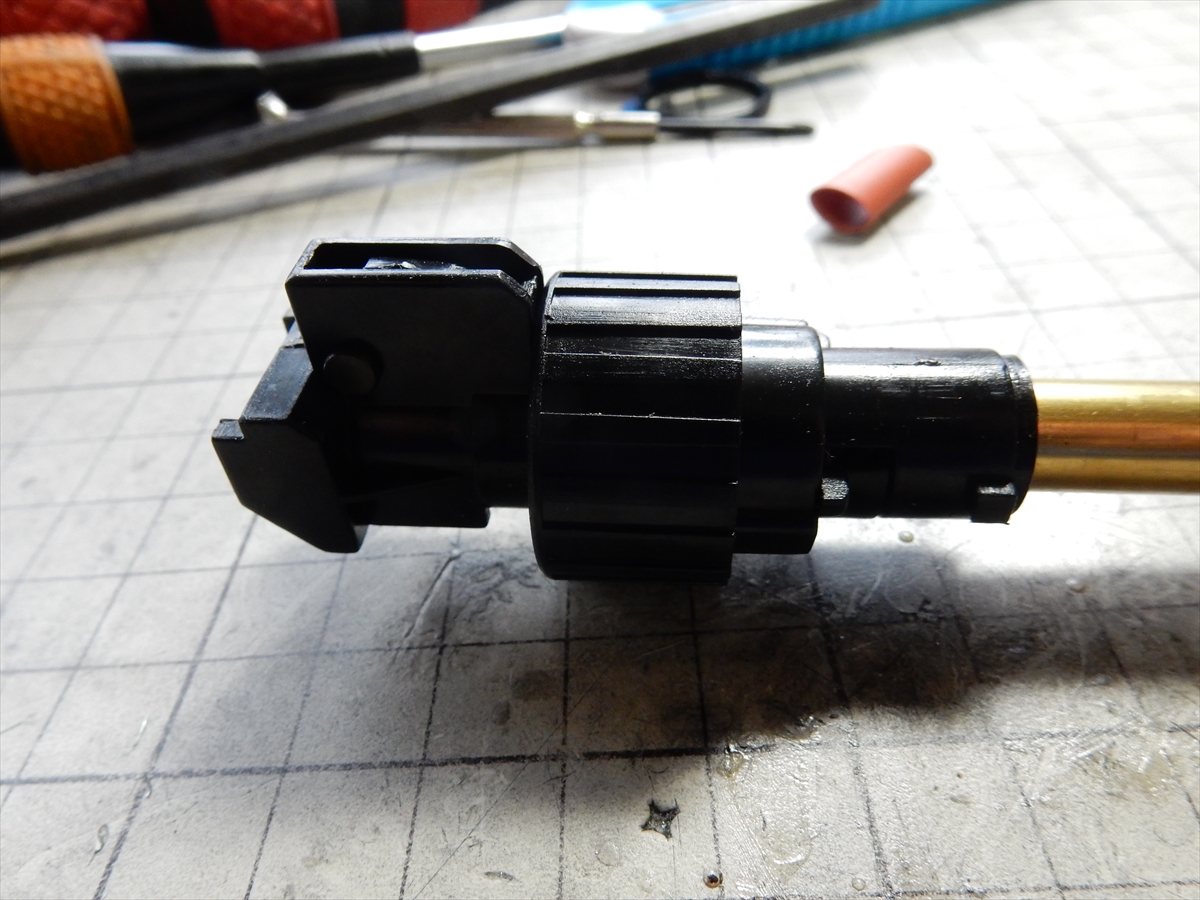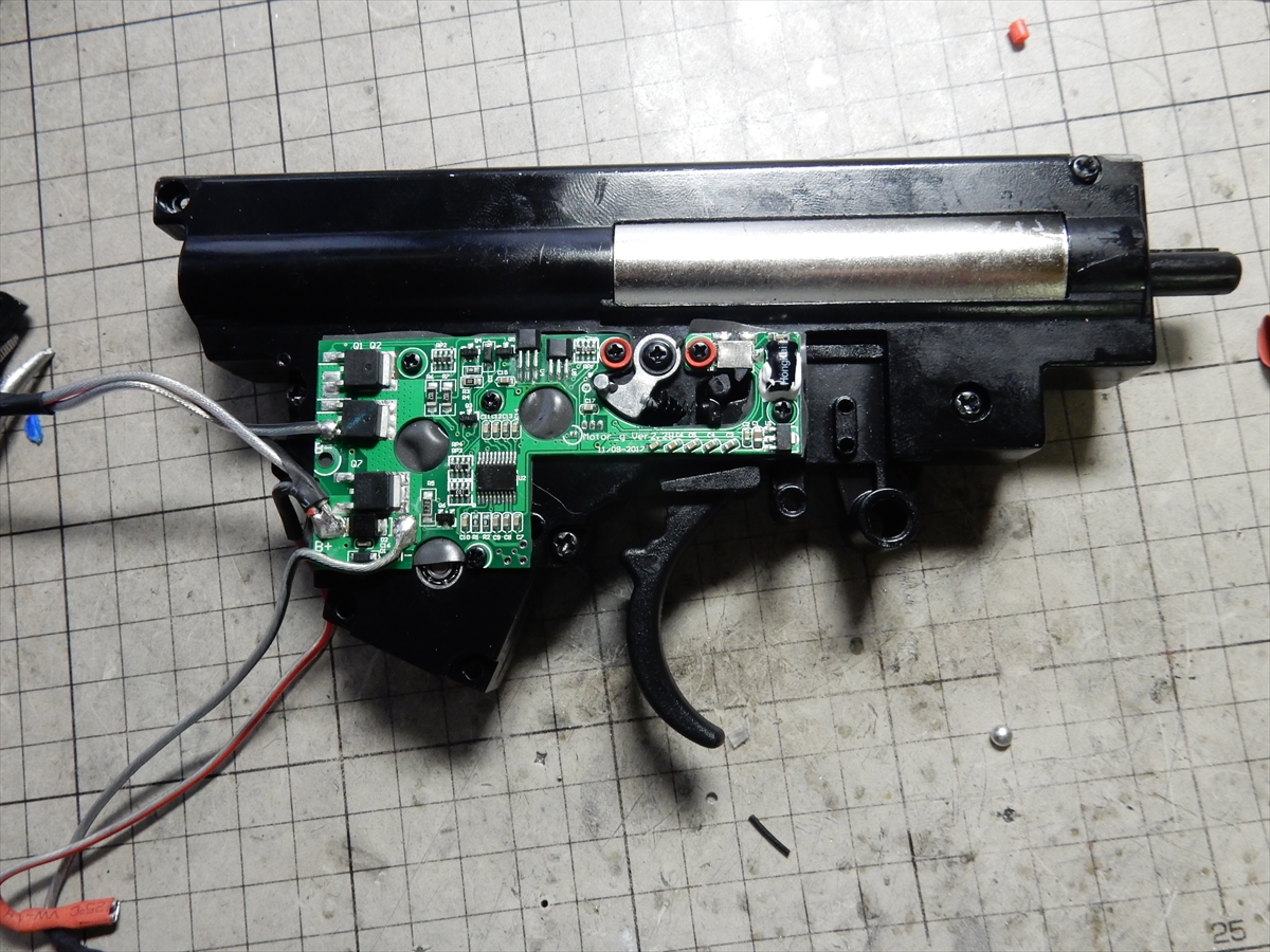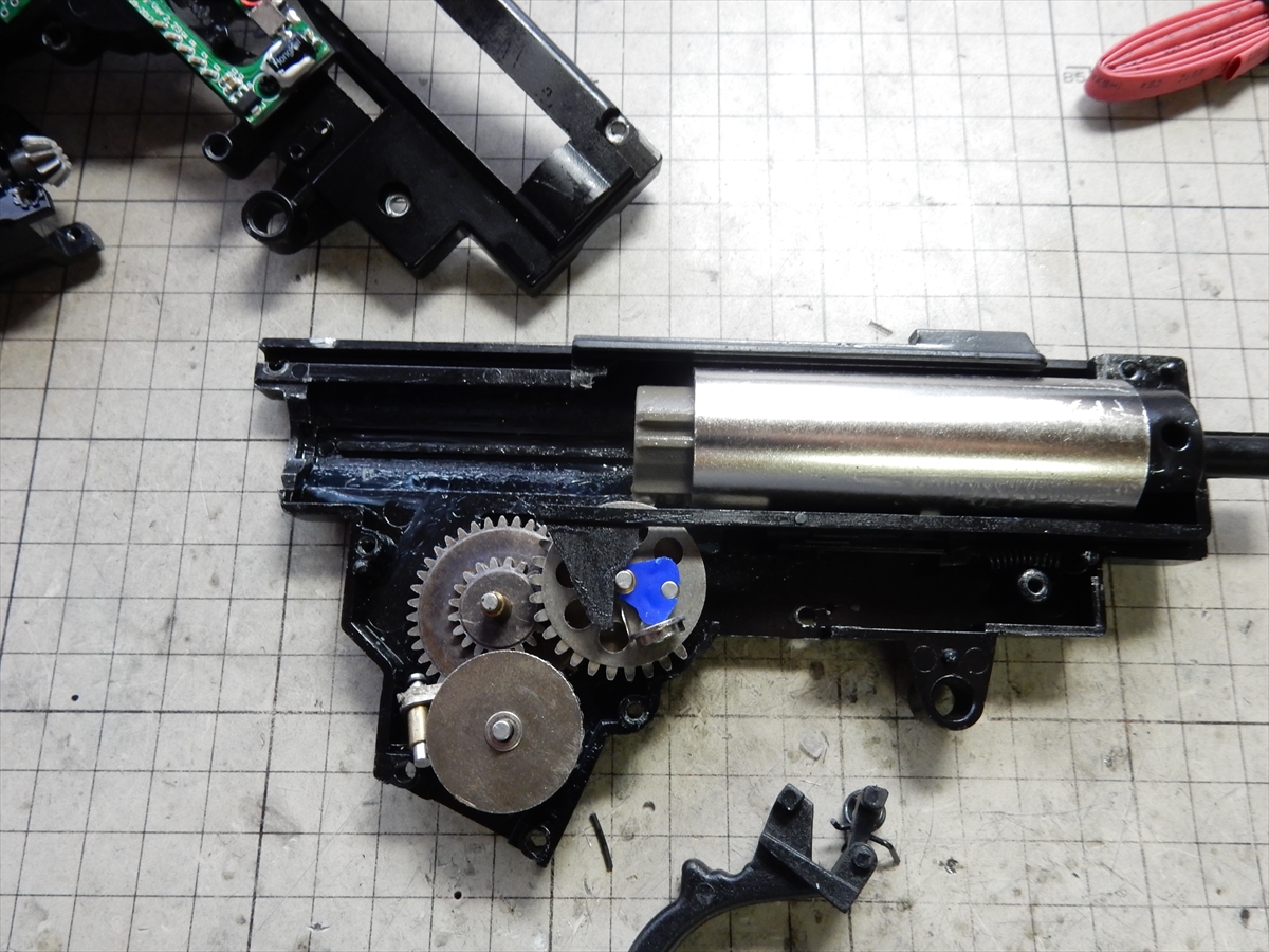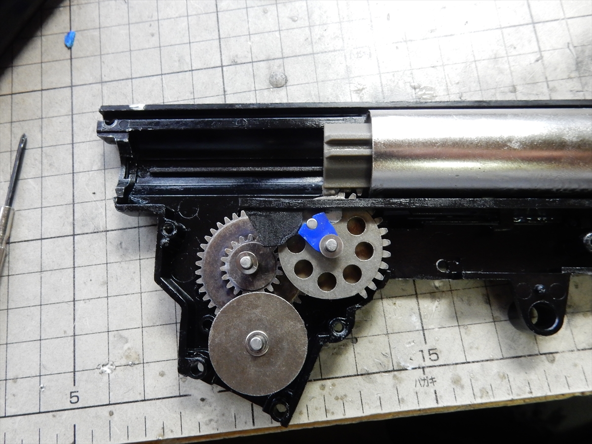セクターギアとスパーギアは、11.1v対応の加工をし、エアノズルとピストンの動きを調整していきます。