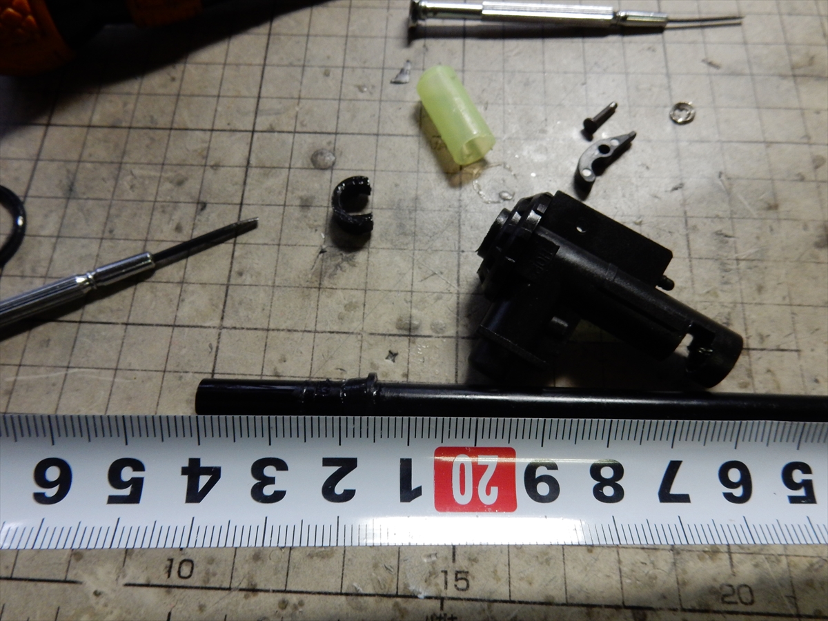 まあ今回はせっかく分解したので、アームを少し削って間にゴム板を噛ませて調節幅を出します。