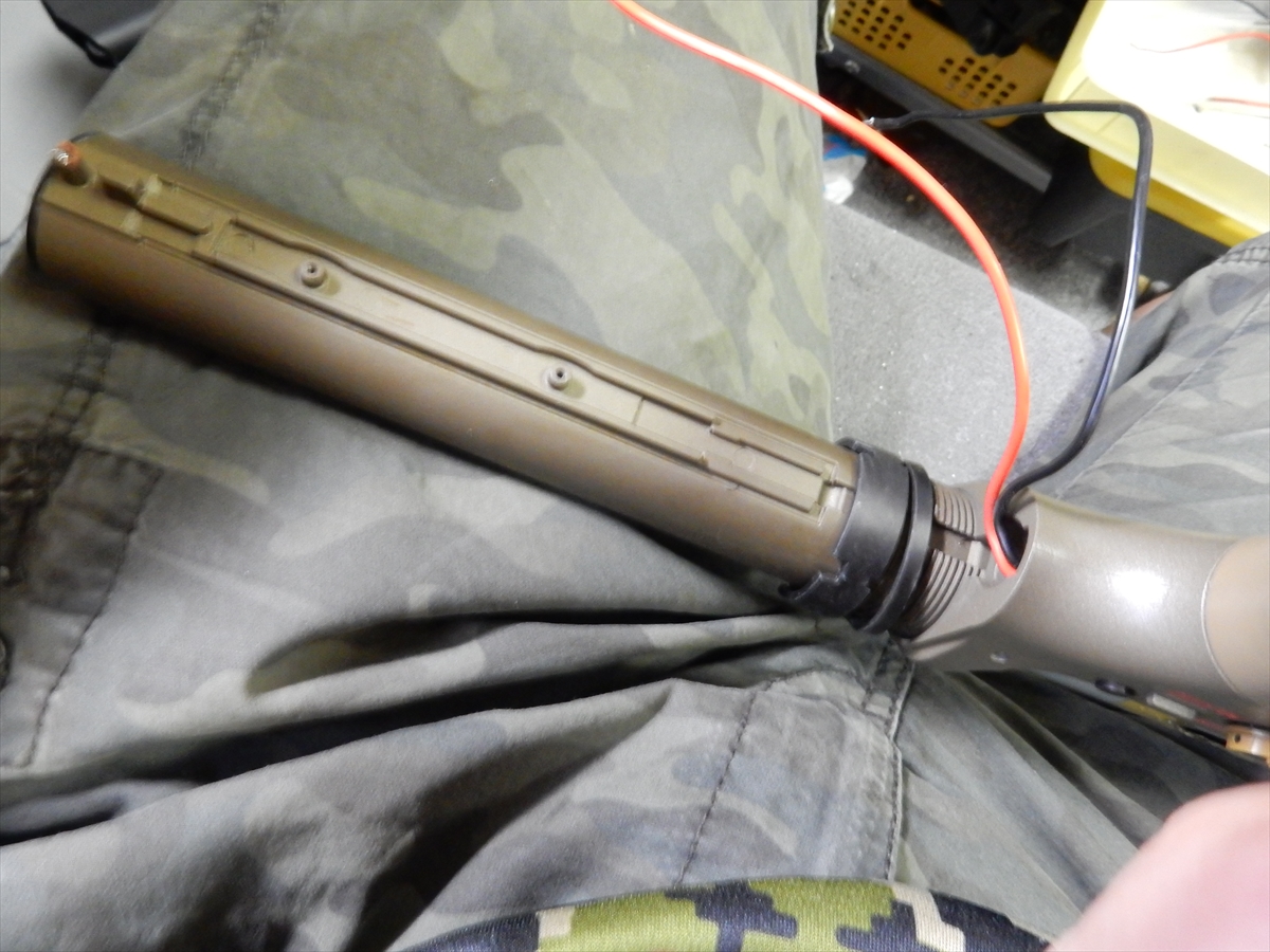 ストックチューブのリングを緩めたらチューブが回転して外れるのですが、先に配線を抜いておかないと絡まります。