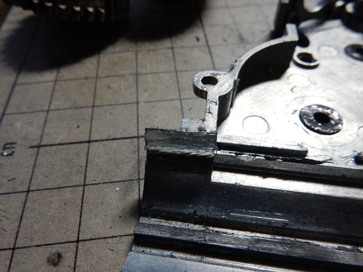このギアは下側がスパーギアと絡むので全部カットしたらダメなので慎重に削っていきます。