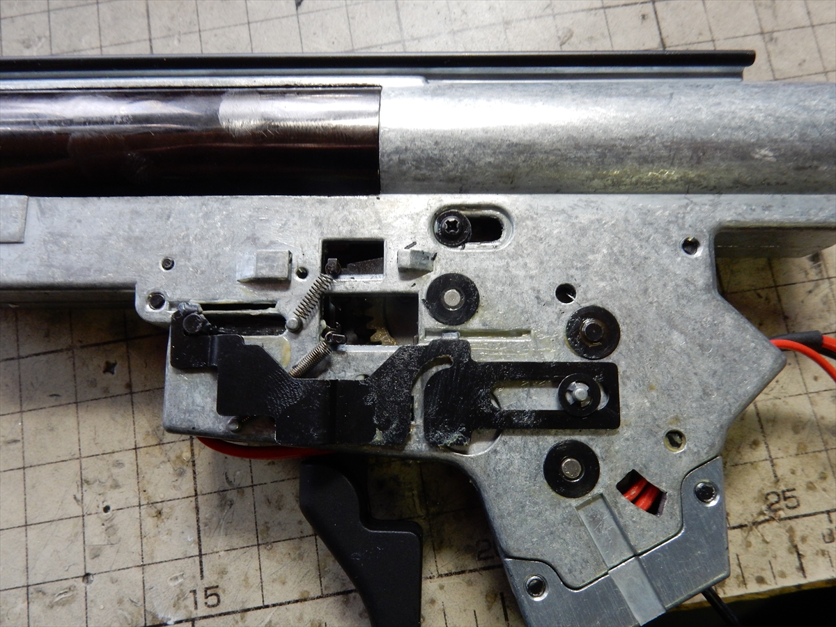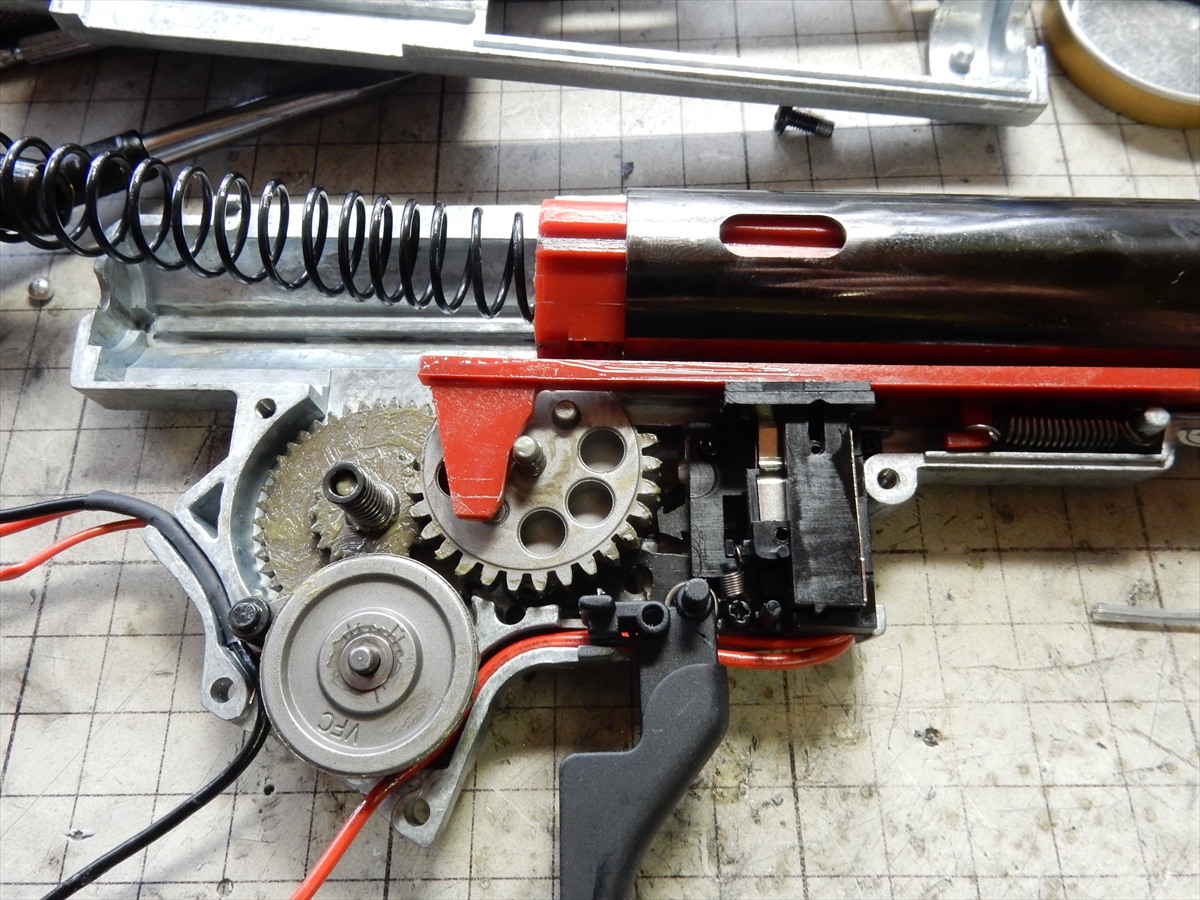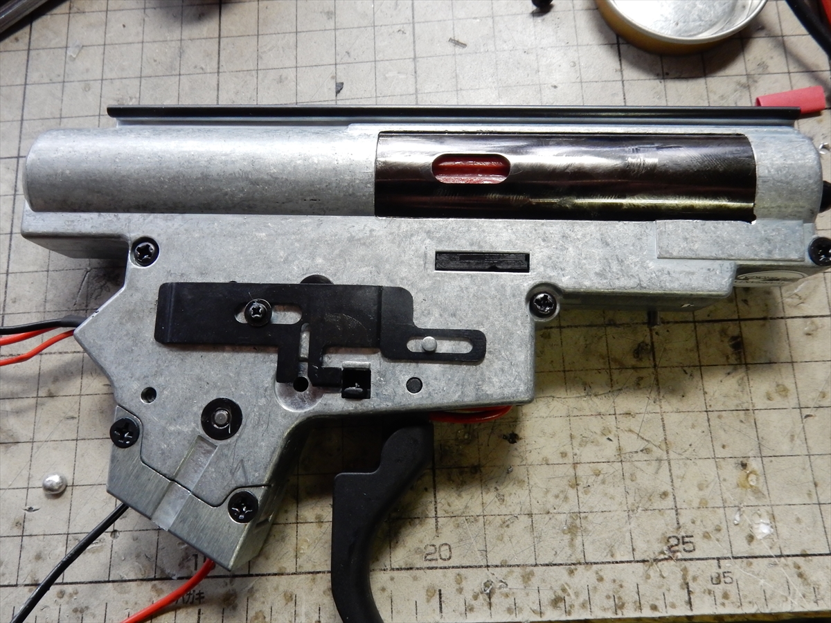 バレルが短い銃なので、初速を上げるにはスプリングを強くする必要があるのですが、そうすると負担も大きいので、大体80中盤から後半に設定してカスタムしています。