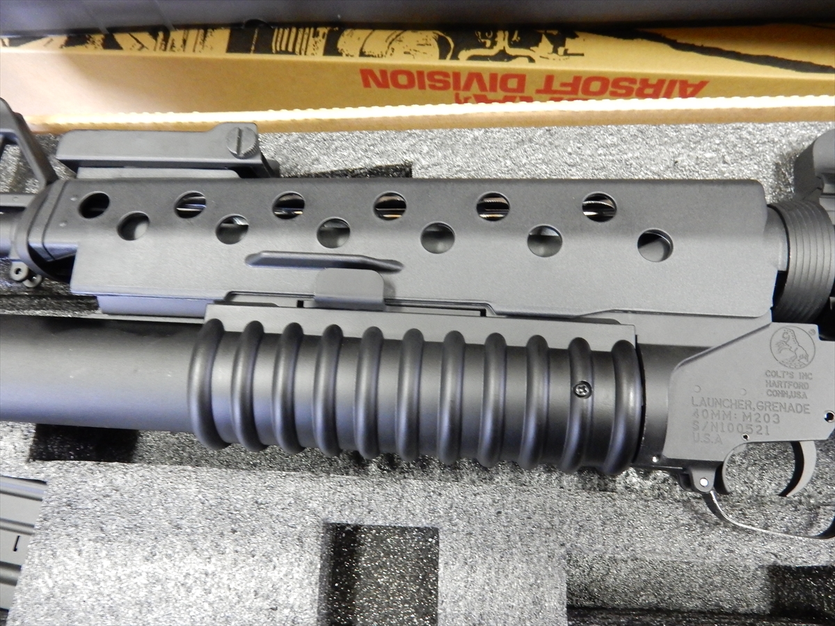 一昔前は、結構当たり前で、203を買えば専用ハンドガードも付いてきたのですが、最近では、レイル化されており、通常のハンドガードに装着できるのであまり見なくなりましたね。