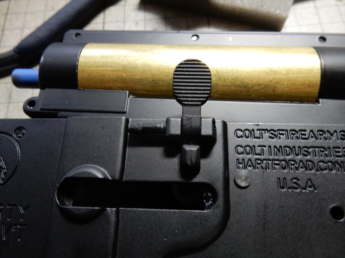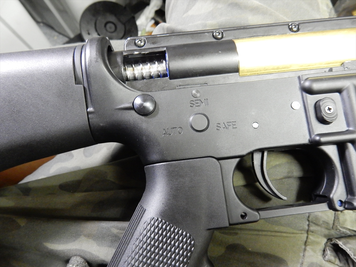 ver2のこの部分に窓が出来た理由は、テイクダウンさせる為のアッパーレシーバーのピンルート確保の為なんですよねw