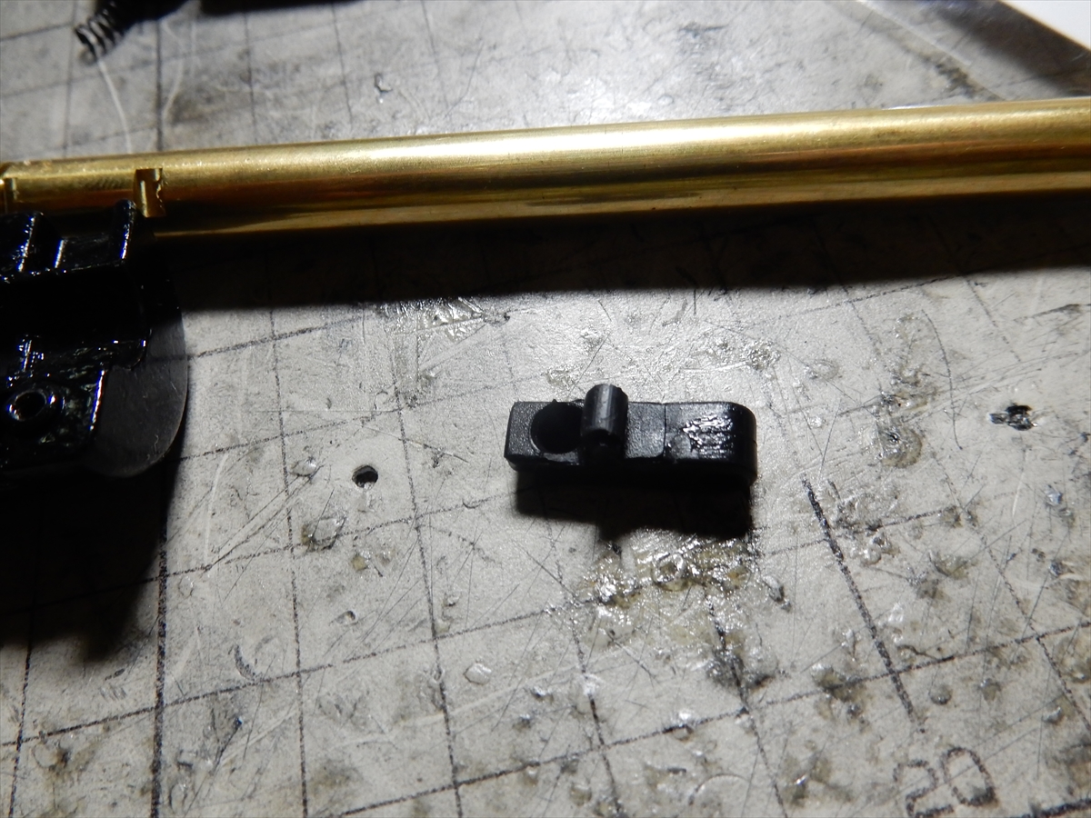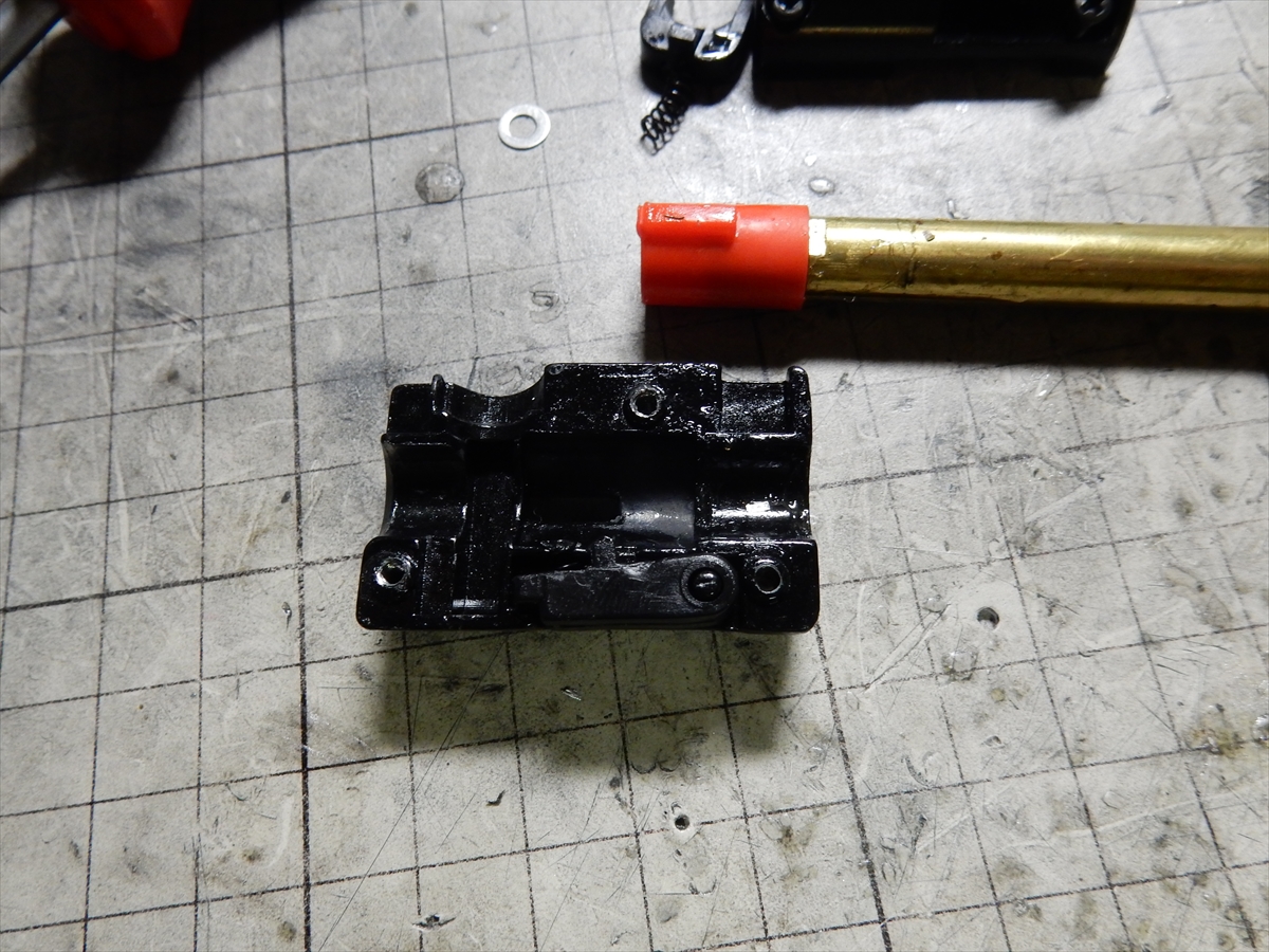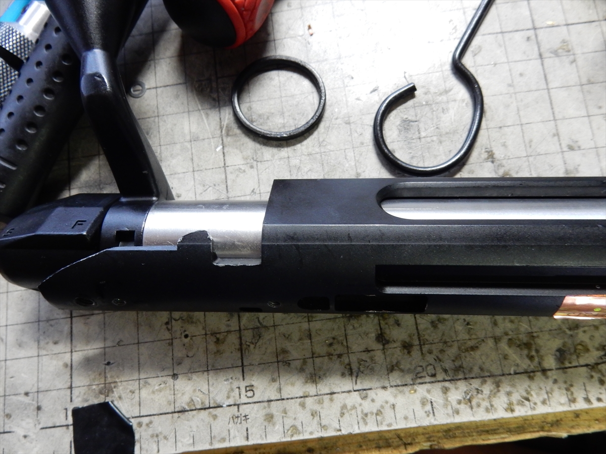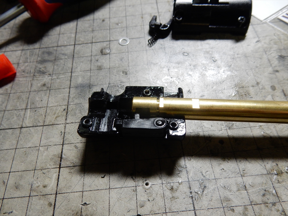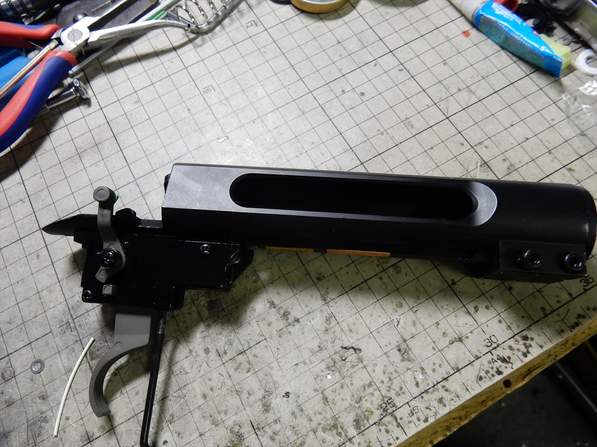 シリンダーのすり合わせ中・・・トリガーユニットは調整の邪魔なので外しております。