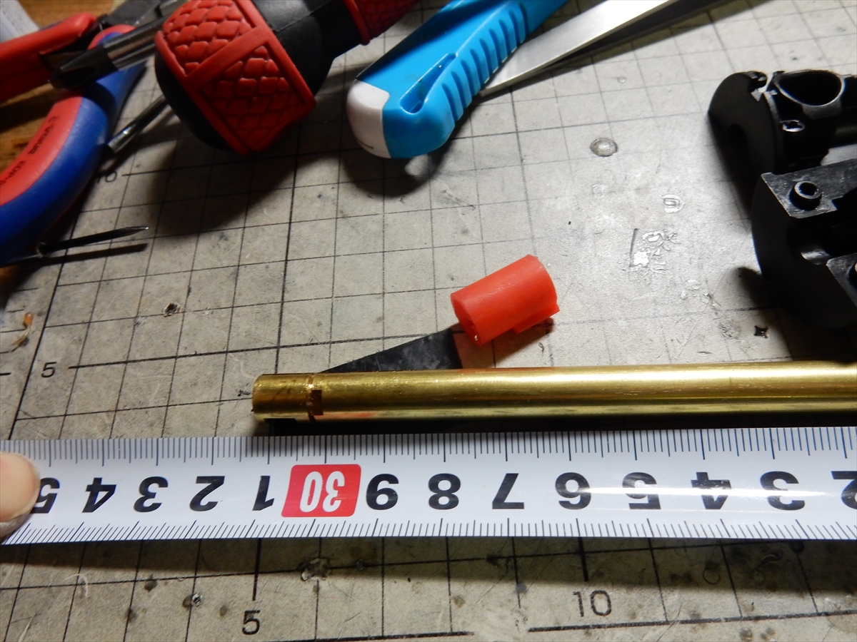 これが直接パッキンを押すのですが、少し削ってゴム板を間に噛まして緩衝材とします。