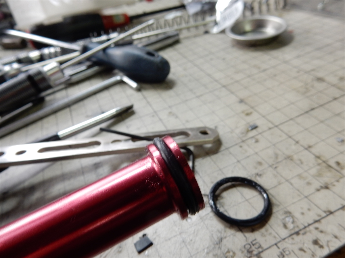 ピストンはアルミ製でOリングはエア漏れしているので交換します。