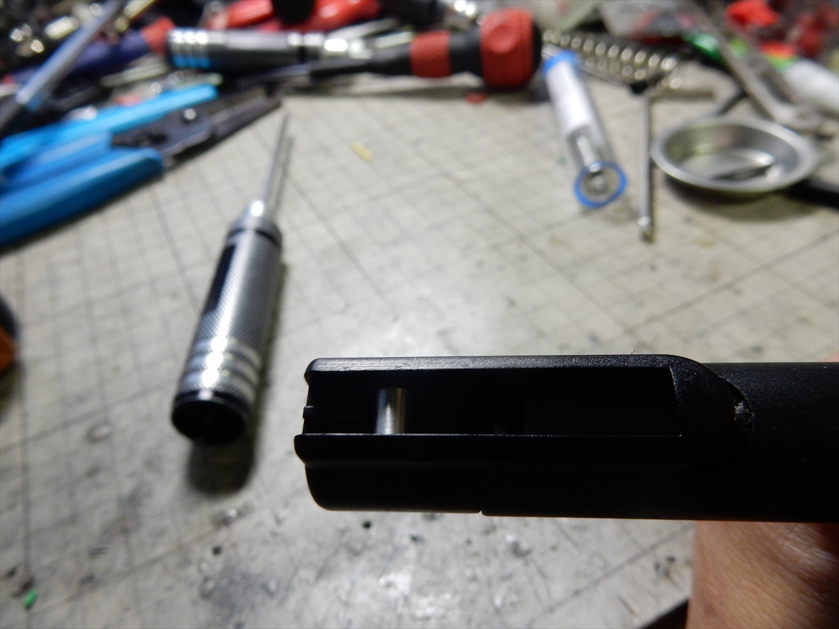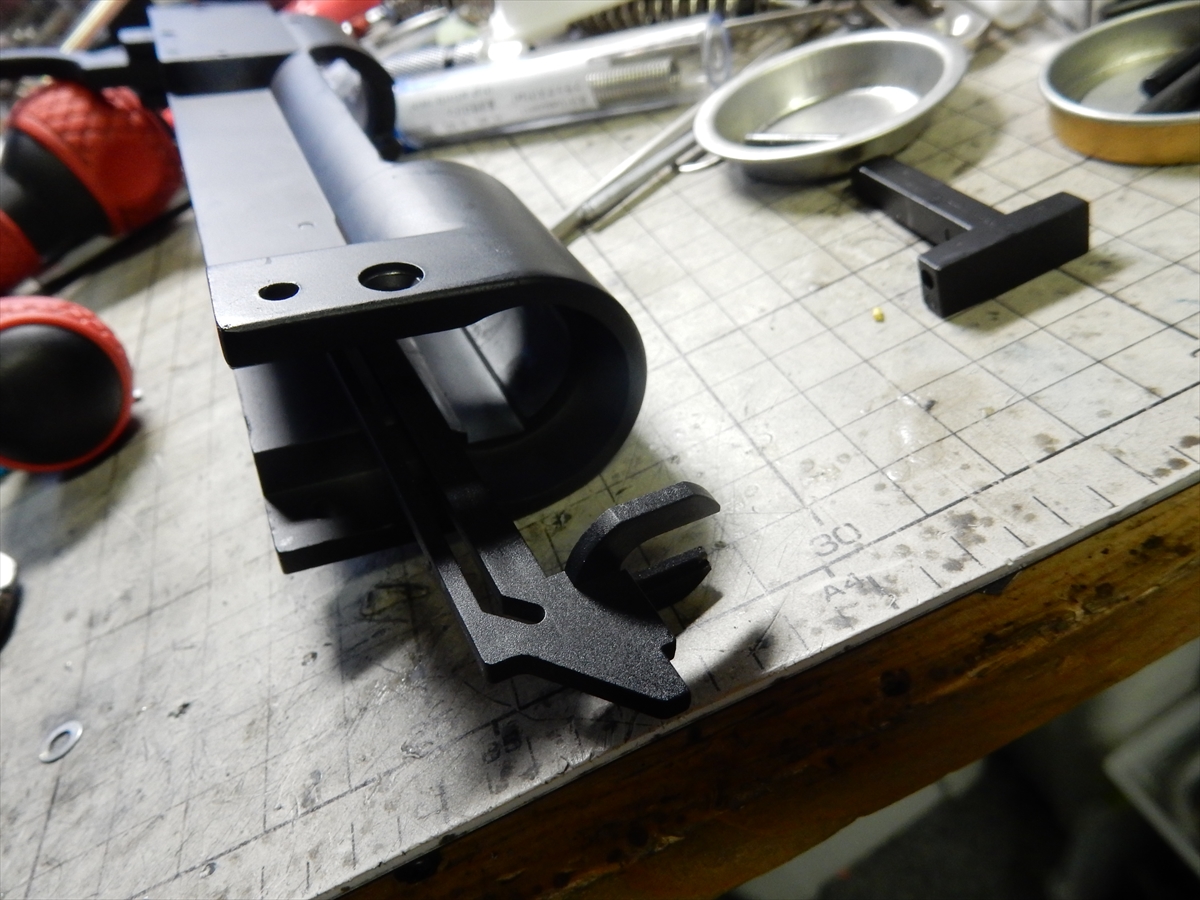 まず、シリンダーガイドはトリガー前の3個あるピンの一番左っぽいw